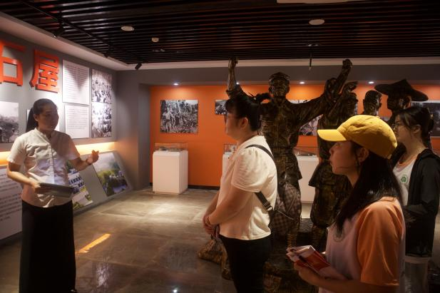 随后,实践团又参观了乡村带头人精神馆。近年来,石屋村以党建为抓手,着力把石屋村打造成基层党建示范村和基层党员干部教育基地,乡村带头人精神馆将培育和发展红色文化与乡村旅游产业相融合,通过“互联网+基层党建”和“互联网+乡村旅游”,推动电子商务进农村,打造具有清晰红色文化脉络、浓郁农村文化习俗、突出风格特色的乡村旅游品牌,推动那大镇区域乡村旅游一体化。