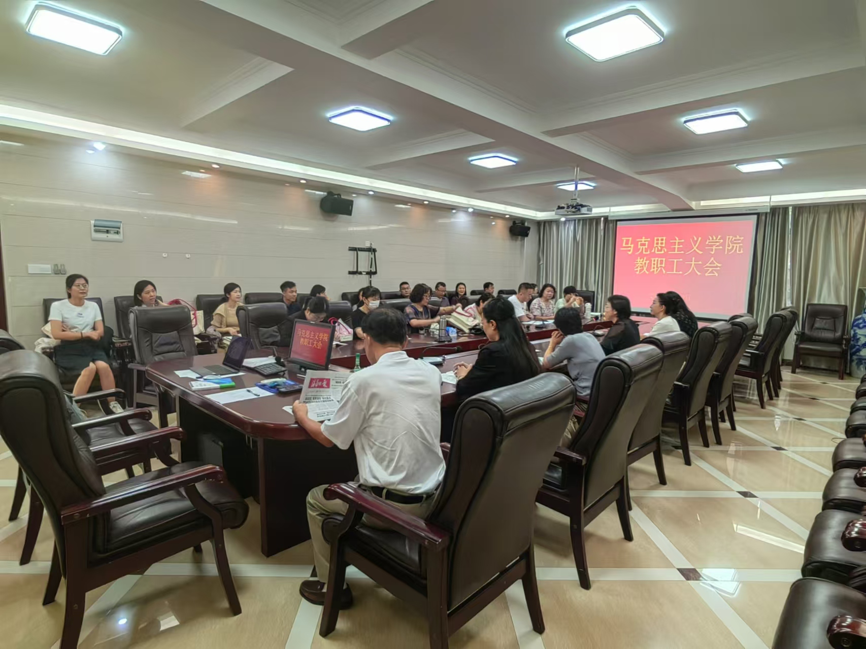 2024年8月30日上午8:00,马克思主义学院全体教职工在龙昆南校区第一办公楼一楼会议室召开新学期开学工作会议,会议由马克思主义学院常务副院长陈红主持。