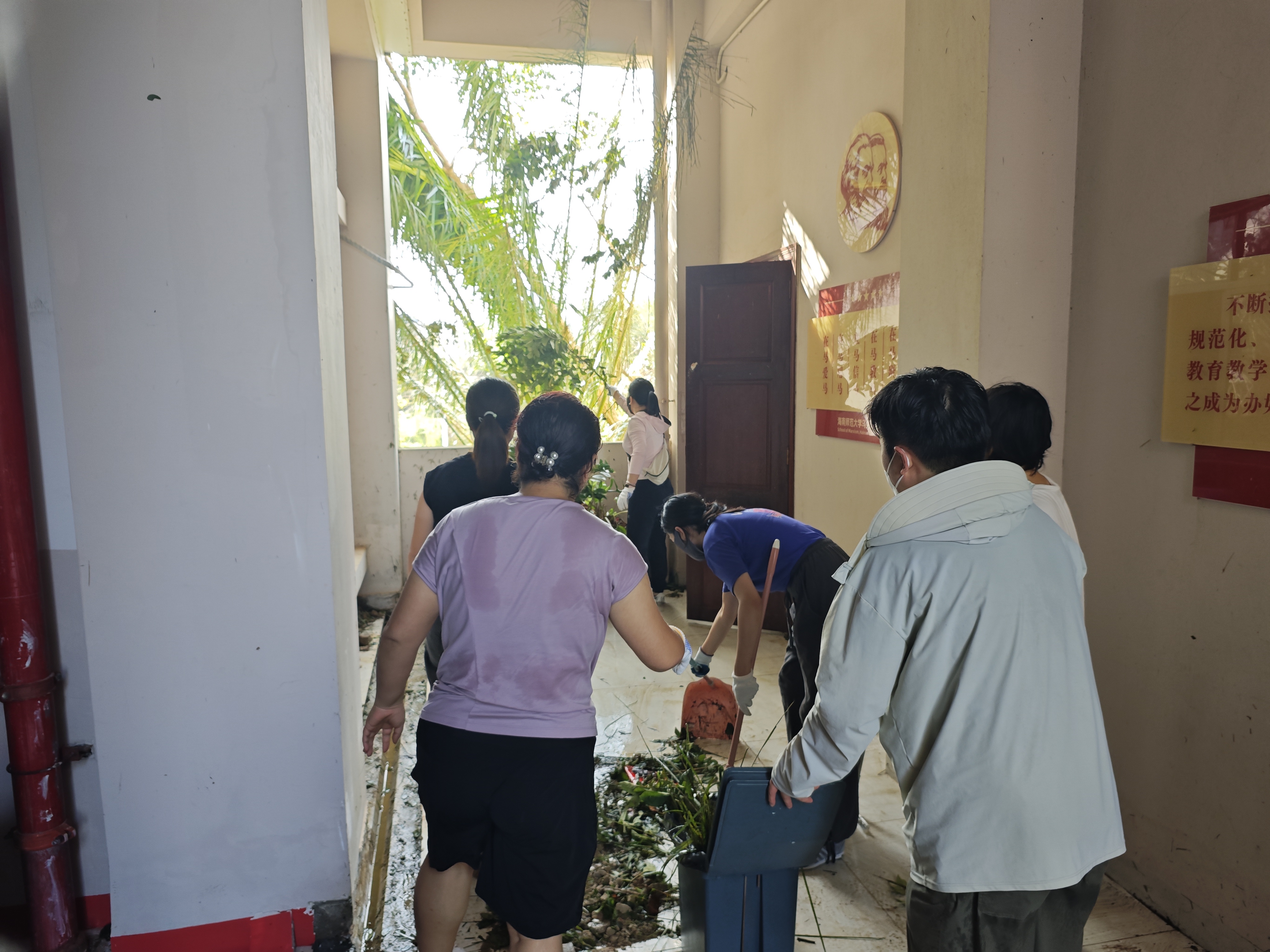 近日,一场突如其来的台风“摩羯”席卷了海南地区,造成了一定的破坏和影响。在这场自然灾害中,海南师范大学也遭受了不同程度的损害,树木倒伏、道路受阻、设施受损,一片狼藉。然而,在困难面前,马克思主义学院师生并没有退缩,9月8日8:00,清晨的第一缕阳光还未完全驱散阴霾,马克思主义学院的师生们已经整装待发,展现出了令人钦佩的团结与决心,齐心协力,迅速投入到校园的恢复重建工作中。