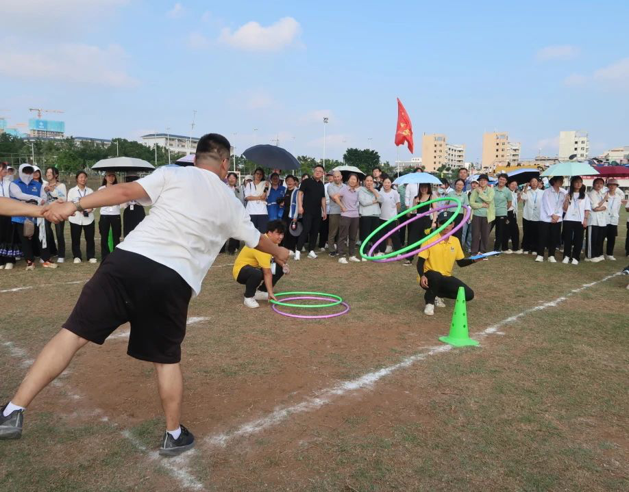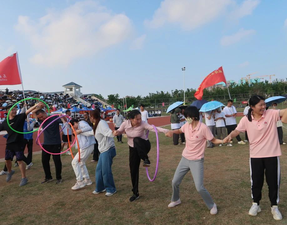 我院教师参加了教工组万众一心抬金棒接力、教工组托球接力、教工组毛毛虫、传圈套杆、教工组10&times50米迎面混合接力比赛。平日里,他们是知识的传递者,用智慧启迪心灵;今天,他们是速度的追逐者,用激情点燃希望。在这里,三尺讲台上的园丁们,将暂时放下粉笔,换上运动装备,用汗水书写不一样的风采篇章。