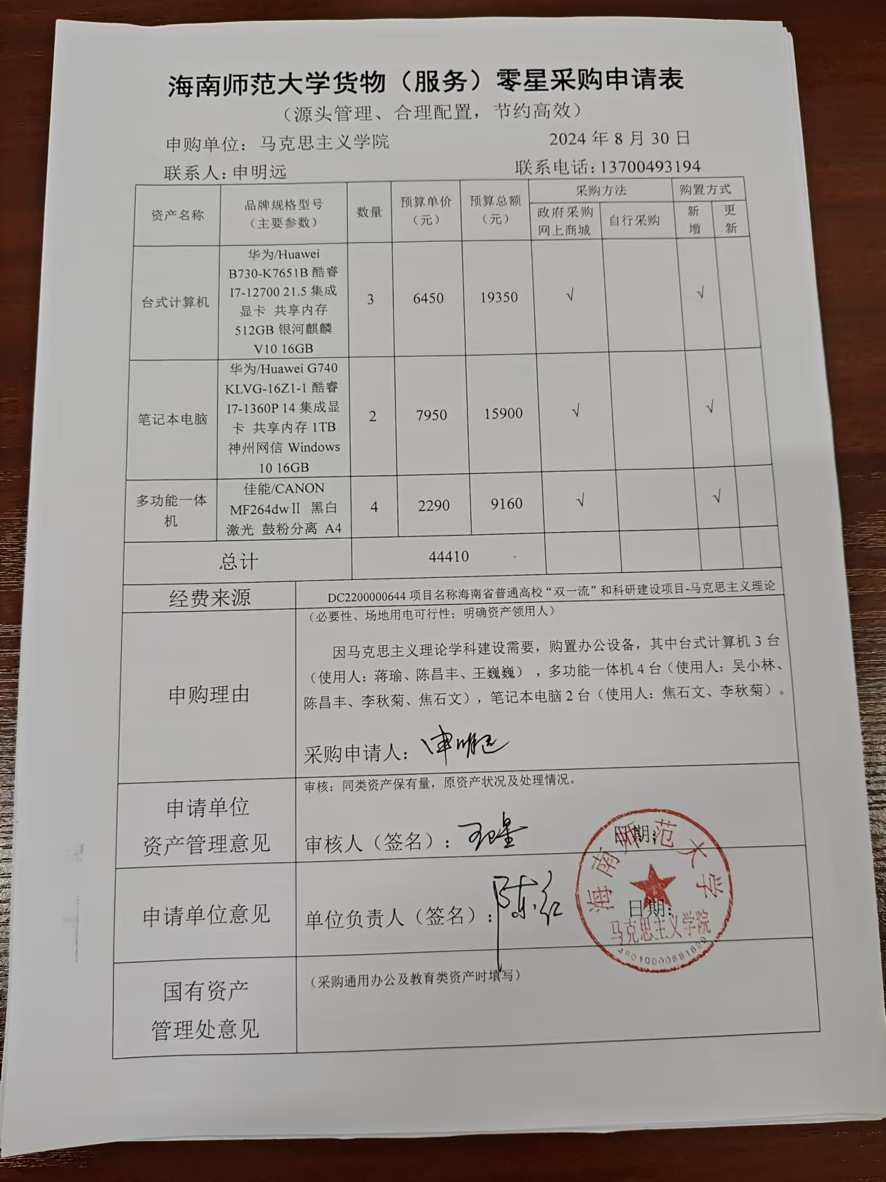 因马克思主义理论学科建设需要,购置办公设备,其中台式计算机3台(使用人:蒋瑜、陈昌丰、王巍巍),多功能一体机4台(使用人:吴小林、陈昌丰、李秋菊、焦石文),笔记本电脑2台(使用人:焦石文、李秋菊)。