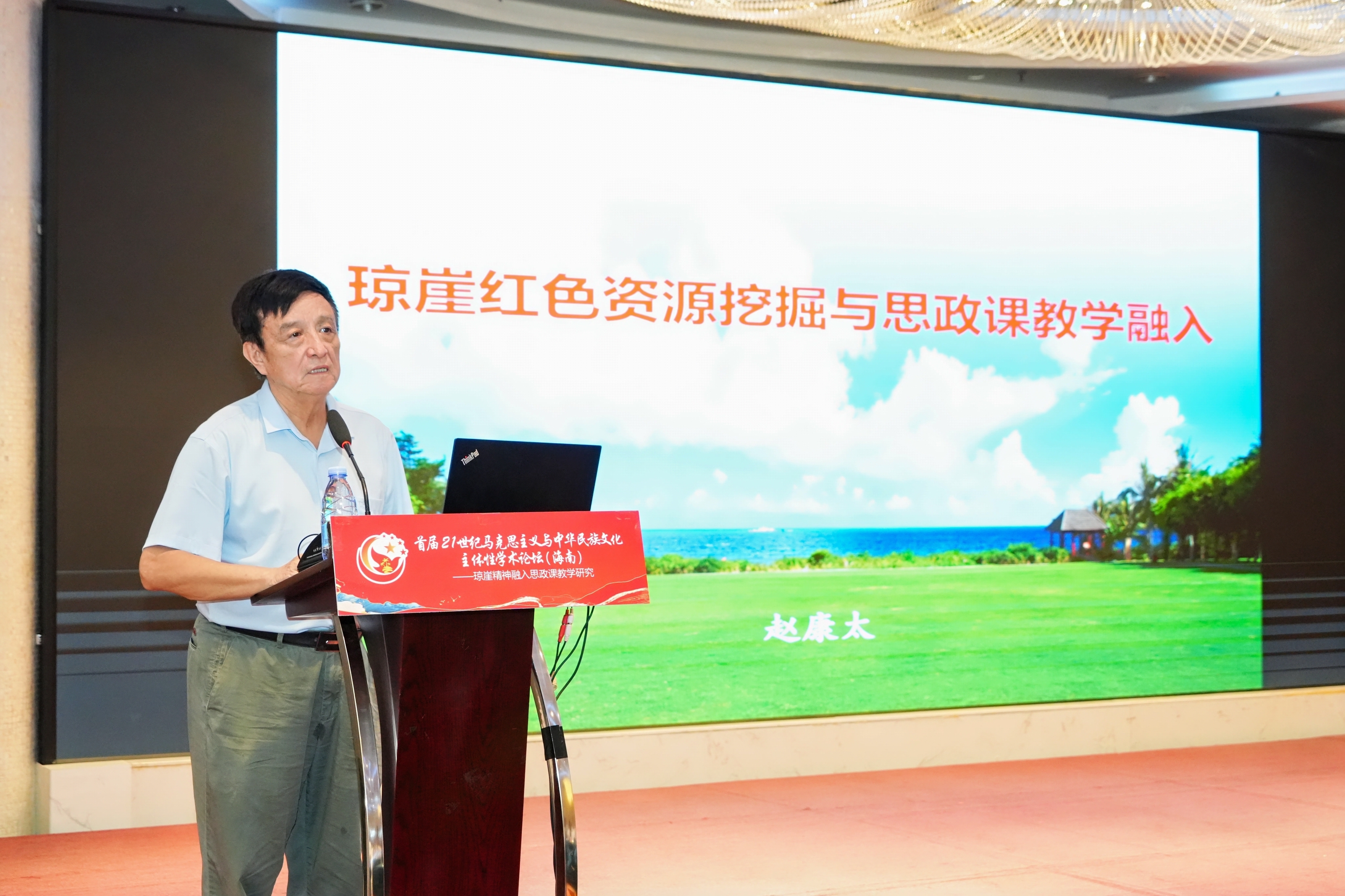 开幕式后,海南省社科联原党组书记、主席,海南省社会科学院原院长,教授、博士生导师赵康太做了《琼崖红色资源挖掘与思政课教学融入》主旨报告。主题发言由海南省高校马克思主义理论研究和教育协调创新中心副主任,马克思主义学院教授姜莉主持,石河子大学马克思主义学院副院长、教授朱文,海南师范大学马克思主义学院教授郑东艳,海南软件职业技术学院马克思主义学院副院长、教授贺东建,武夷学院马克思主义学院教研室主任、副教授曹关群等7名专家分别进行了主题发言。