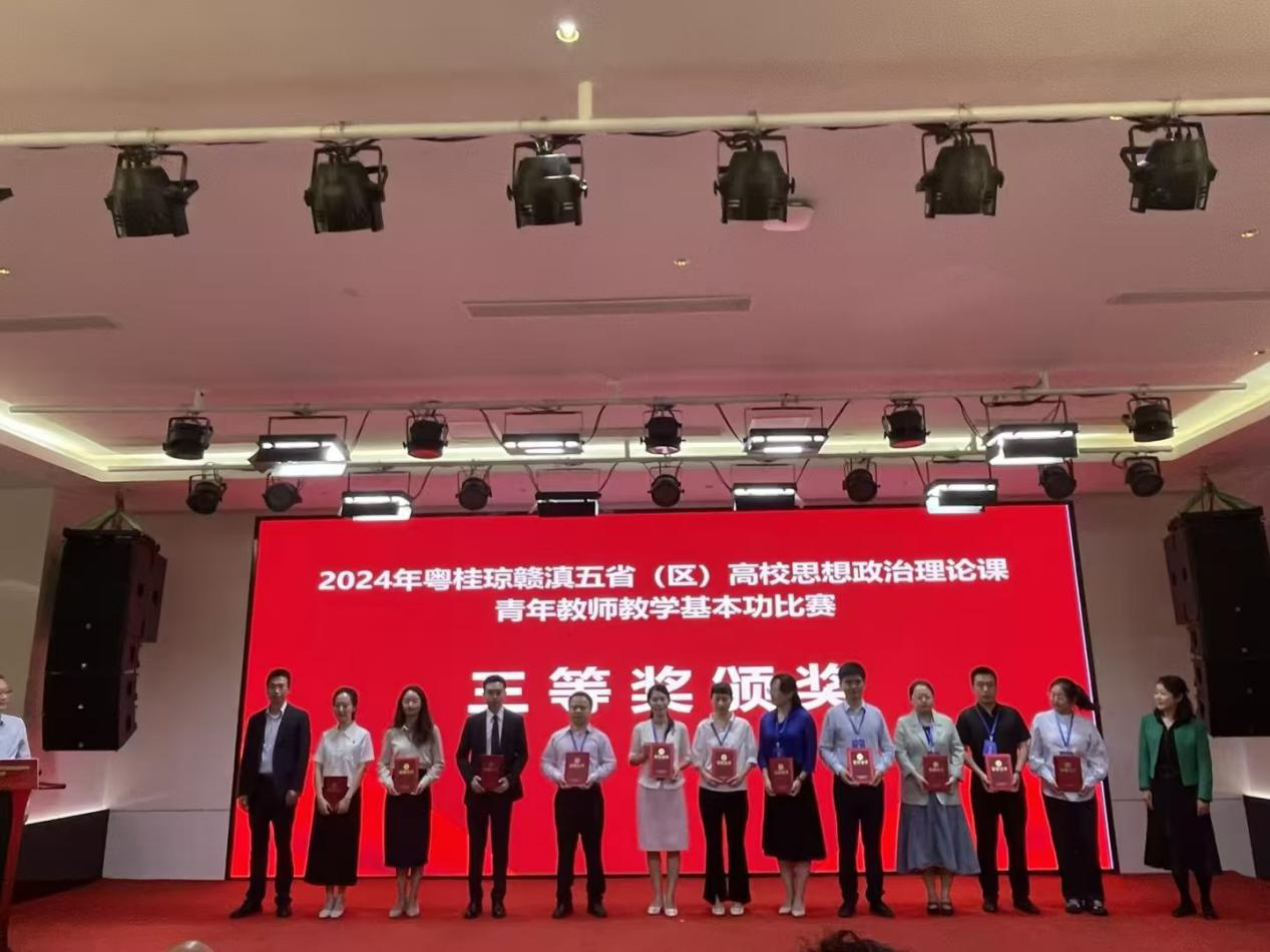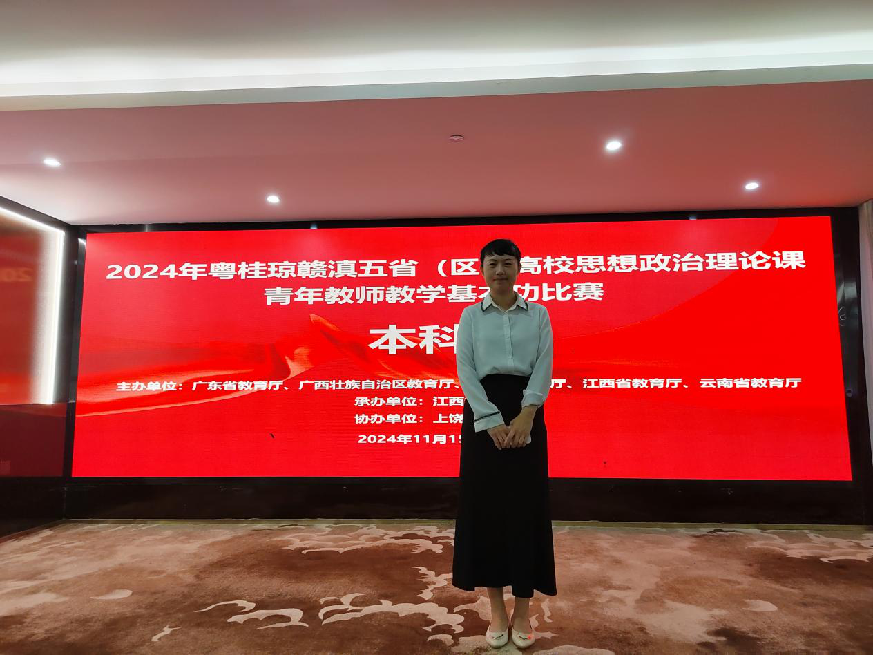据悉,粤桂琼赣滇五省(区)高校思想政治理论课青年教师教学基本功比赛自2009年首次举办以来,已成为粤桂琼赣滇五省(区)高校思政理论课建设的一大盛事,是五省(区)高校思政课教师成长的重要平台。我院一直高度重视思政课教师教学能力建设,坚持以赛促改、以赛促学、以赛促教、以赛促研,不断提升思政课教师育人水平和思政课教学质量。