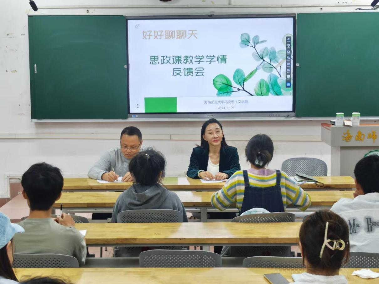 为进一步提升思政课教学实效性,推动思政课教学改革,畅通师生沟通渠道,2024年11月21日晚,马克思主义学院分别在桂林洋、龙昆南校区召开“好好聊聊天”思政课教学学情反馈会。学院教学副院长、教学督导和各教研室主任参加会议。