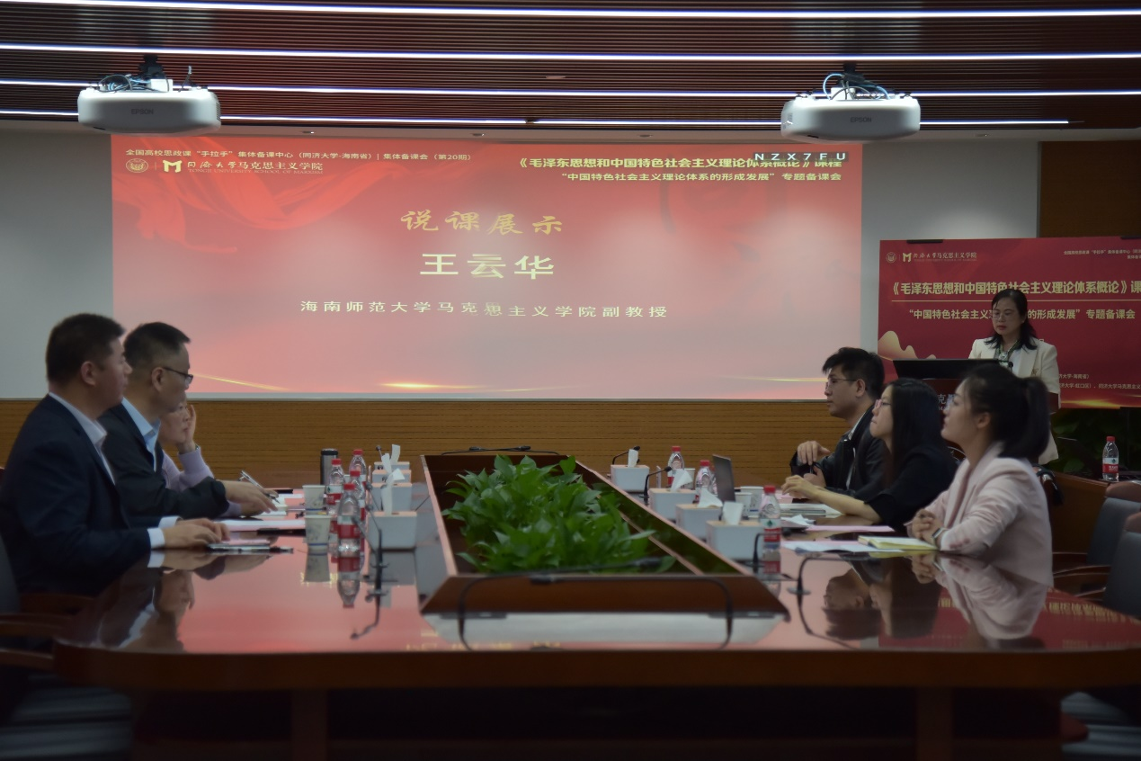 为深入贯彻落实习近平总书记关于思政课的重要指示,根据教育部社科司统一部署,全国高校思政课“手拉手”集体备课中心(同济大学-海南省)于2024年11月14日下午1:30-3:30在同济大学马克思主义学院举办第二十期集体备课会,即《毛泽东思想和中国特色社会主义理论体系概论》课程“中国特色社会主义理论体系的形成发展”专题备课会。同济大学马克思主义学院副院长、教授吕健老师主持,我院教师王云华参会。