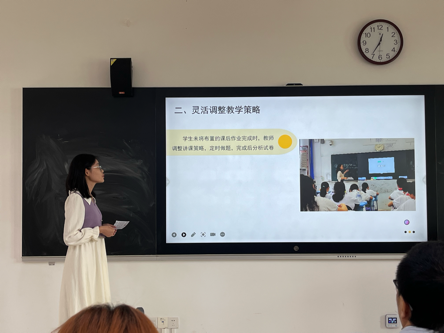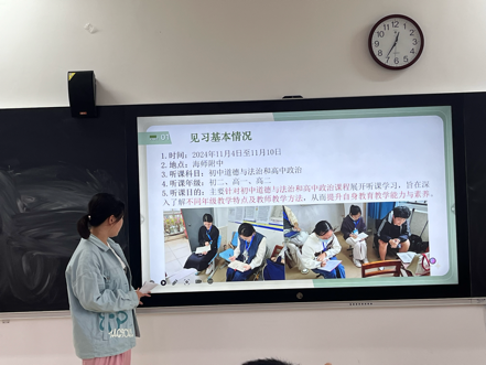 许袖飞老师充分肯定了各小组在见习过程中的努力与创新,对汇报中的亮点给予了高度赞扬,同时也针对同学们学习过程中存在的不足提出了建设性的意见与建议。启示我们思政专业学生既要将时政与教学结合,深入了解文件,融党的二十届三中全会精神于课堂,又要联系社会现实,提升自身素养与能力,为思政教育筑牢根基。