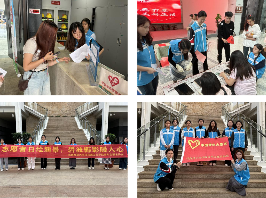 为响应海南师范大学阳光青年志愿者协会“12·5”国际志愿者日主题活动的号召,弘扬“奉献、友爱、互助、进步”的志愿服务精神,传递公益力量,将爱和温暖洒向社会,马克思主义学院青年志愿者协会积极策划与组织小马青志愿者们,于11月30日至12月3日间,在海口市的三个区六个校外场馆内有序开展了一系列以“志愿者日绘新影,碧波椰影暖人心”为主题的志愿服务活动。