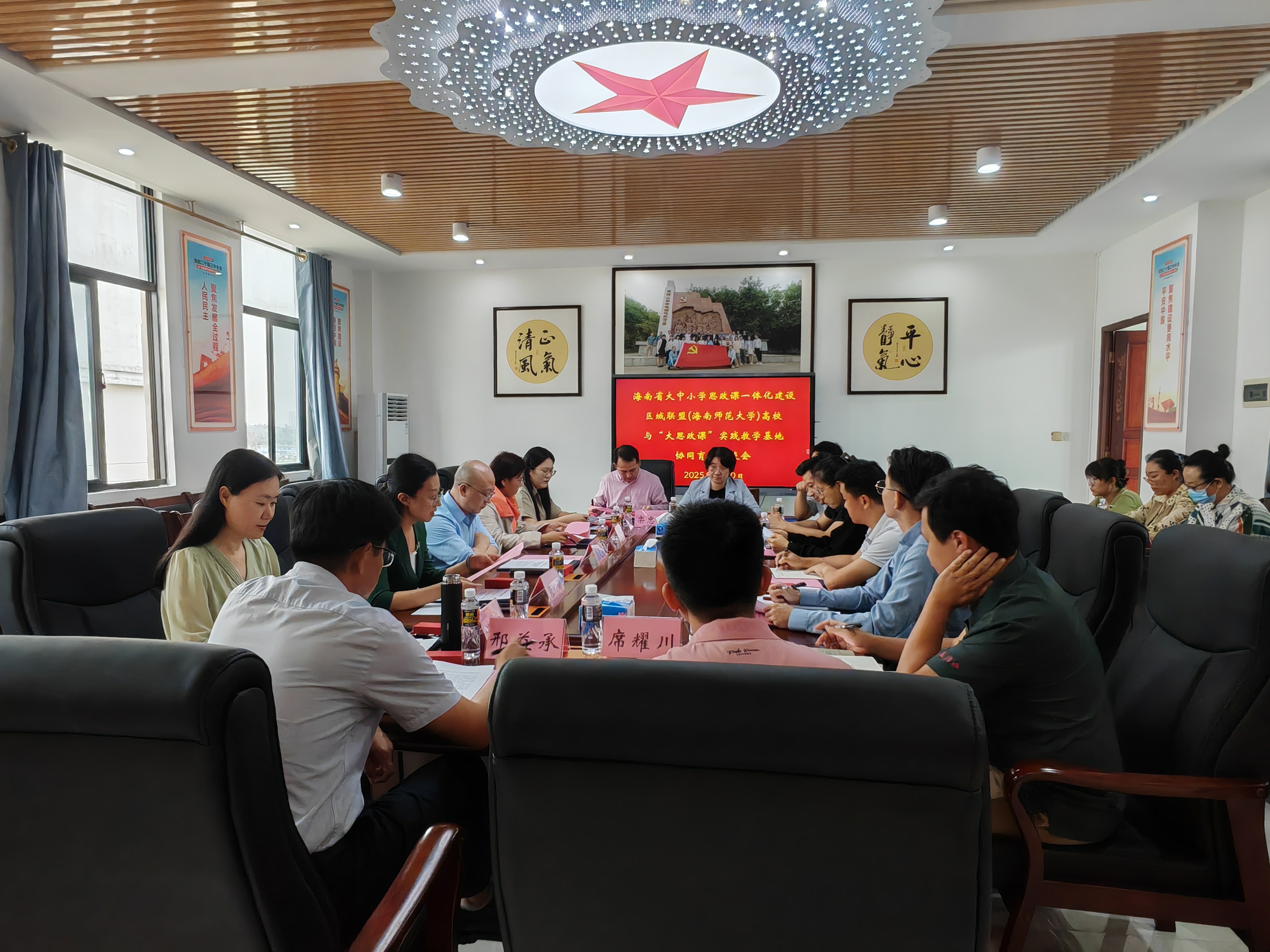 2025年4月10日,海南省大中小学思政课一体化建设区域联盟(海南师范大学)高校与“大思政课”实践教学基地协同育人座谈会在海南师范大学马克思主义学院召开,海南省教育厅思想政治教育处处长周晓东、海南师范大学区域联盟内6所高校马克思主义学院院长、海南省7个生态文明教育类“大思政课”实践教学基地负责人参加会议。会议由海南师范大学马克思主义学院副院长张妍主持。