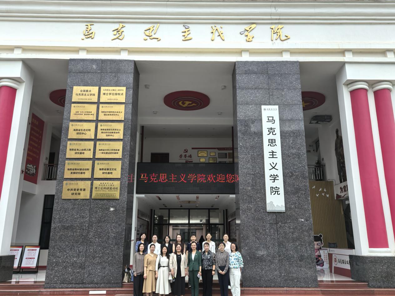 为深入学习贯彻党的二十大和二十届历次全会精神,推动高校思想政治工作守正创新,2025年4月10日上午,贵州大学马克思主义学院思想道德与法治教研室主任罗佳副教授率学习考察团一行7人赴海南师范大学马克思主义学院开展思想政治理论课教学科研交流活动。海南师范大学马克思主义学院副院长张妍主持座谈会,两院教师代表围绕新时代思政教育高质量发展展开交流。