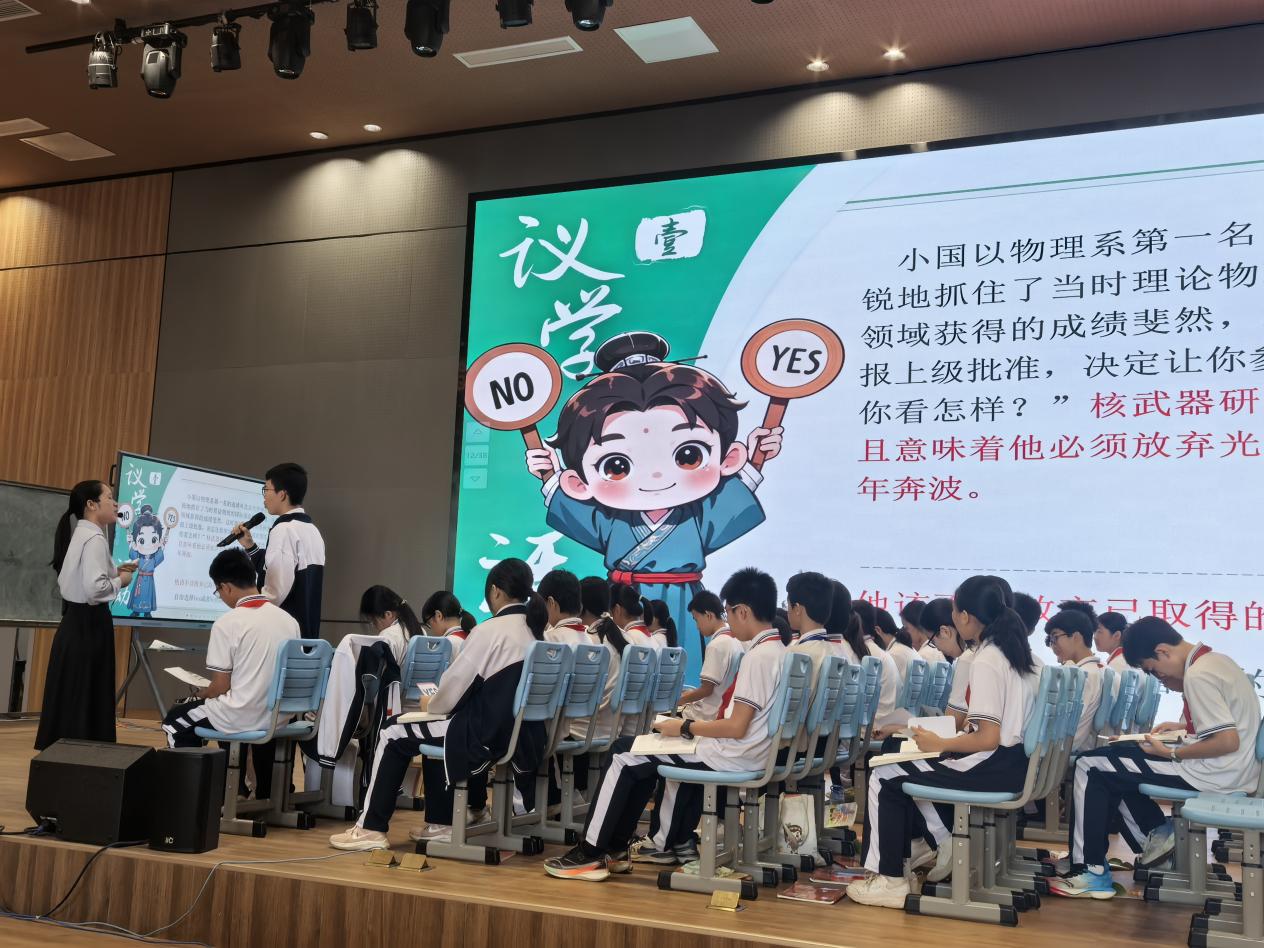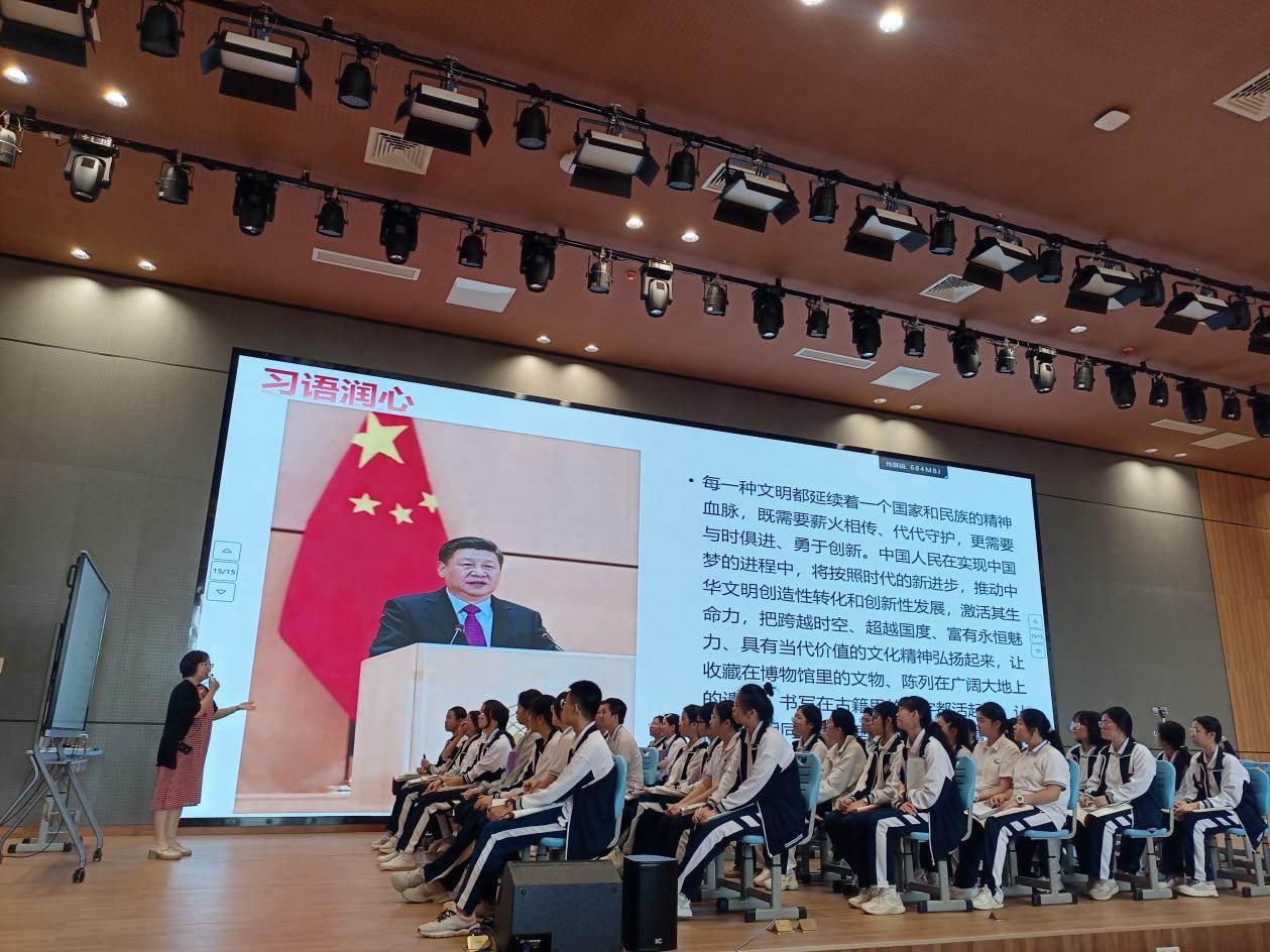 活动在海南师范大学附属中学江东校区多功能报告厅举行,由该校对外交流中心主任李小虹主持。三节不同学段的思政课依次展开,生动呈现了从初中到高中再到大学的思政教育“成长链”。