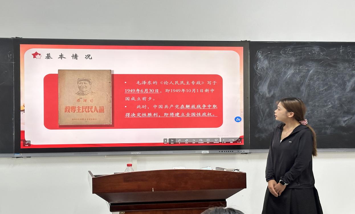 最后,协会指导老师郑伟民做出总结。郑老师以文本内容出发,重点讲述了新中国成立初期党在财政、土地改革、民主、教育等方面的问题,同时结合了全过程人民民主、数字化、人工智能、新质生产力等现实热点话题,要求同学们要辩证地看待历史事件,结合现实与历史,注重培养问题意识。