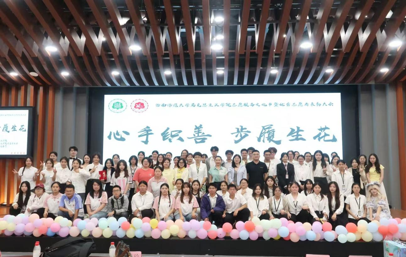 为了弘扬志愿服务精神,增强我院学生社会责任感,海南师范大学马克思主义学院于2025年5月11日19:00在图书馆一楼报告厅举办了主题为“心手织善,步履生花”的志愿服务文化节暨优秀志愿者表彰大会。出席本次活动有马克思主义学院党委副书记王巍巍,马克思主义学院团委书记武超,马克思主义学院马艳玲老师,马克思主义学院支继丹老师,学院青年志愿者协会会长资曲溪、学院团委副书记董慧、学院学生会执行主席林新意、学院学生会主席团成员陈紫月、校阳光青年志愿者协会理事长、部长们及各兄弟学院的青年志愿者协会会长、部长们。