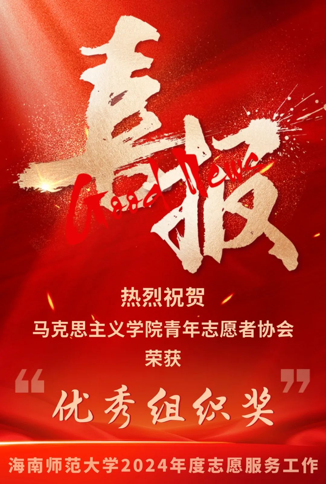 近日,海南师范大学2024年度志愿服务工作评优结果揭晓,马克思主义学院青年志愿者协会(以下简称“马院青协”)凭借扎实的组织建设、创新的服务模式以及卓越的社会贡献,荣获志愿服务工作优秀组织奖!