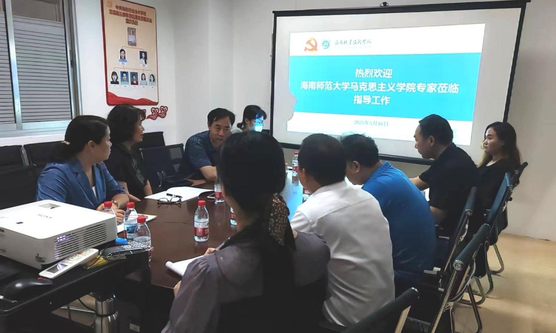 2025年5月16日下午,“新思想”教研室主任吴小林与郑东艳教授、文长春教授一行,赴海南职业技术学院开展校际教研交流。海南职业技术学院马克思主义学院院长温蕾、“新思想”教研室主任吴钟和及专职教师代表共同参与研讨。