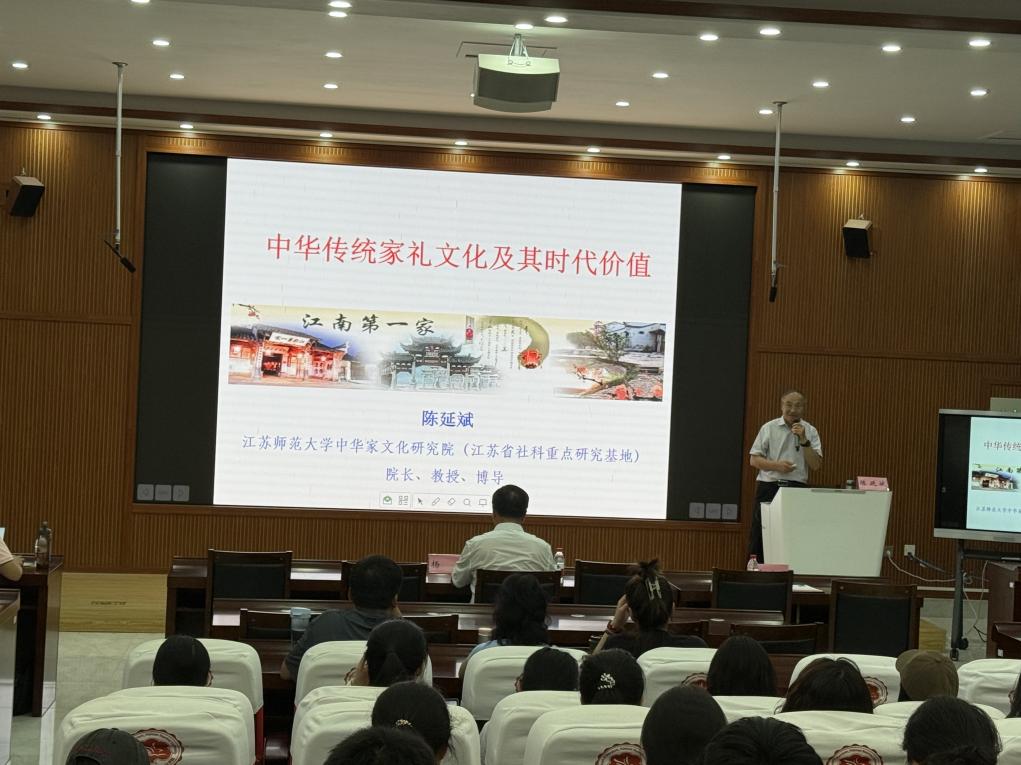 陈延斌教授以饱满的热情和深厚的学识,结合视频、图片等多种形式形象生动地讲述了家礼文化是中华优秀传统文化的重要组成部分;中华传统家礼文化的内涵、载体、构成和中华传统家礼文化的时代价值。