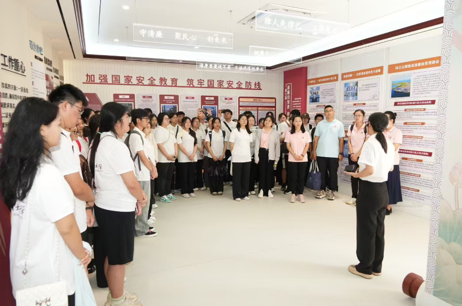 7日上午,在学院党委副书记王巍巍老师的带领下,学院七支调研队伍共计59名师生以“爱我中华、振兴国家、强国有我、不负韶华”为口号在海南省澄迈县塘北村开展践行主题为“总体国家安全观”的暑期实践调研活动。上午师生共同参观考察了中共澄迈县纪念馆旧址、澄迈县国家安全教育基地、澄迈县金江镇廉洁文化实践展览馆。随后,调研团队又参观考察了塘北村光伏产业发展现状,了解塘北村以“智慧光伏+”为切入点的乡村振兴光伏致富道路。