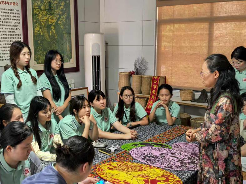 把思政小课堂同社会大课堂结合起来,引导青年学生走进乡村、服务社会,在“乡遇美好”中打造“行走中的思政课”,在“振兴乡村”中贡献青年智慧力量,海南师范大学马克思主义学院与海南开放大学联合开展思想政治教育专业社会调研比赛暨“振兴村·正青春”理论宣讲与乡村振兴促进实践活动。2025年7月8日上午,海南师范大学马克思主义学院“海马青年”调研团一行,在申明远老师的带领下,深入秀英区石山镇黄海桃技能大师工作室,围绕非物质文化遗产——剪纸艺术的保护、传承与创新发展,开展了一场富有深度的专题调研活动。此行旨在亲身感受中华优秀传统文化的独特魅力,深刻理解文化强国建设中非遗传承的时代价值,并激励新时代青年投身基层、守护文化根脉。