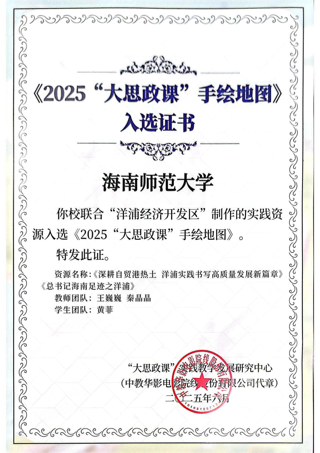 近日,由我联合洋浦经济开发区携手打造的实践教学资源《深耕自贸港热士洋浦实践书写高质量发展新篇章》和《总书记海南足迹之洋浦》入选教育部“2025‘大思政课’手绘地图”。这一成果标志着我院在“大思政课”实践教学资源建设方面取得重要突破,为讲好海南自贸港建设故事、传承践行总书记重要指示精神提供了生动载体。