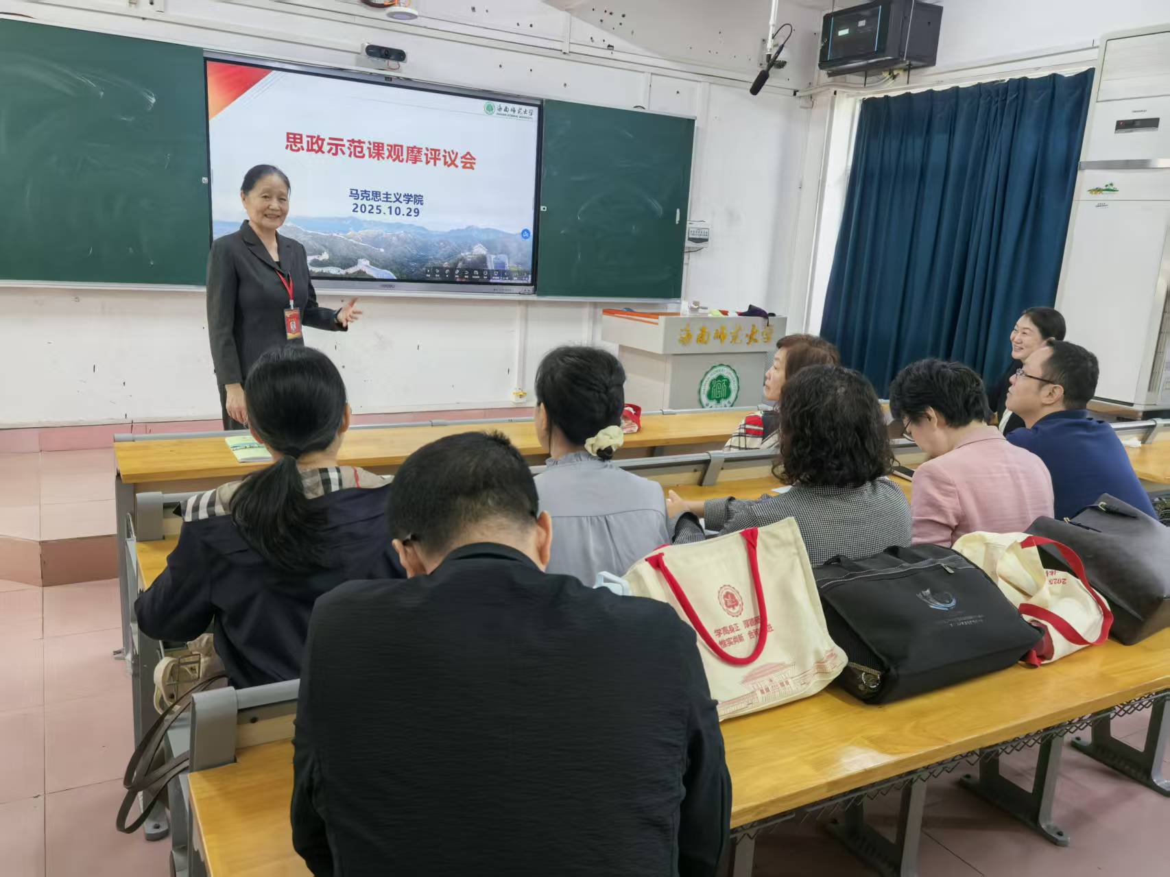 10月29日上午,马克思主义学院在田家炳教育书院803教室成功举办“思想道德与法治”课程教学观摩评议会。校教学督导陈海燕教授、唐若玲教授莅临指导,学院教学指导委员会成员、相关教研室主任及“思想道德与法治”课程专兼职教师共同参与了本次活动。