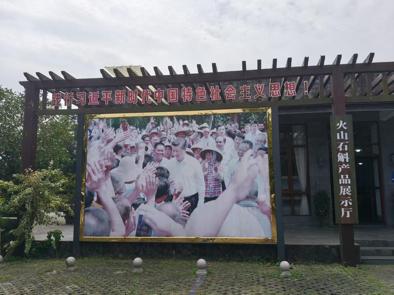 师生们走进火山石斛园,实地考察施茶村“点石成金”的产业奇迹。面对缺土缺水的火山地貌,村党委带领村民探索出“火山石上种石斛”的特色路径,采用“公司+合作社+农户”模式,发展石斛仿野生种植200亩。石斛产业不仅盘活了闲置的火山石资源,还带动村民通过入股分红、务工增收,2022年村民收入较2017年增长243倍。此外,村里打造“一村一品”多元产业格局,如美富村的家风家训文化、关梁村的豆腐产业、花林村的民宿经济,形成联动发展的乡村振兴样板。