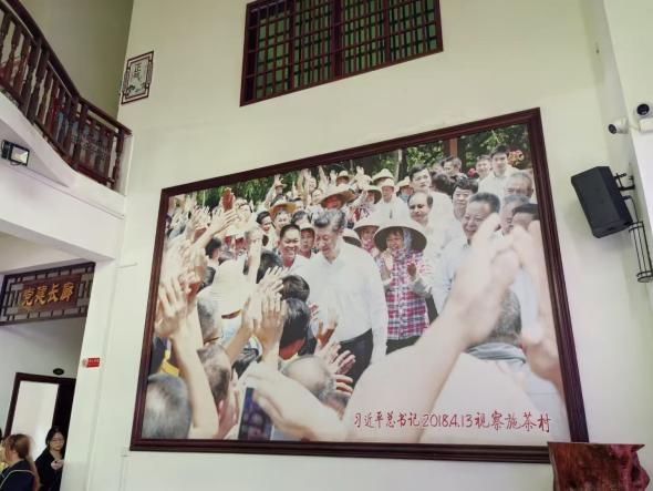 在施茶村党群服务中心,讲解员介绍了该村以党建引领发展的实践成果。施茶村党委是海口市首个村级党委,下设9个党支部,通过“党员带头、群众参与”的模式,推动产业发展与乡村治理深度融合。村内荣誉墙上悬挂着“全国先进基层党组织”“全国乡村治理示范村”等11项国家级荣誉,展现了基层党组织在脱贫攻坚、产业发展中的核心作用。村干部队伍年轻化、专业化,近70名返乡大学生投身乡村建设,成为乡村振兴的中坚力量。