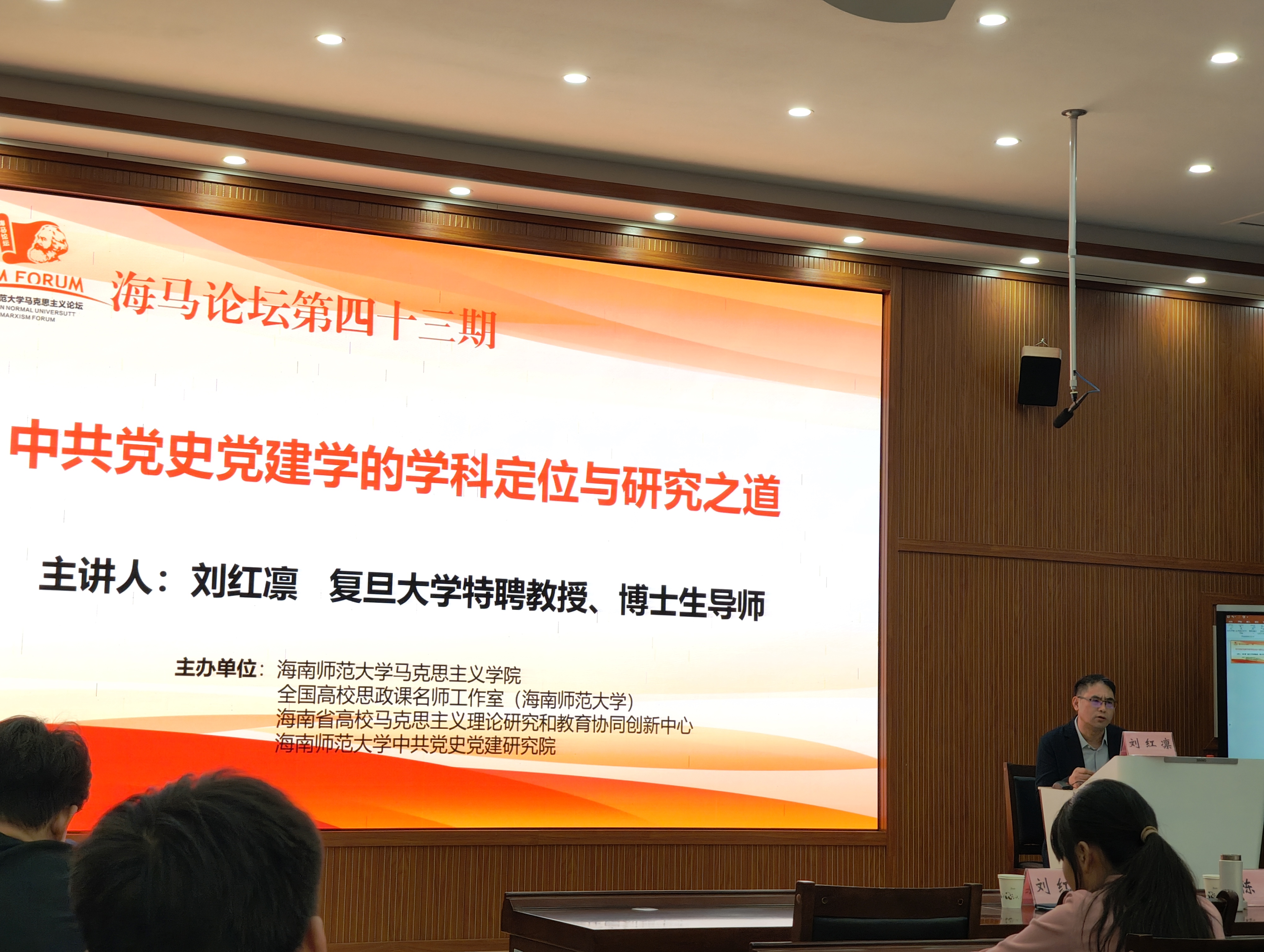 2025年11月14日下午,应海南师范大学马克思主义学院邀请,复旦大学特聘教授、中共党史党建研究院院长、党内法规研究中心主任、教育部 “长江学者” 特聘教授刘红凛,在马克思主义学院201报告厅作了题为《中共党史党建学的学科定位与研究之道》的学术讲座。学院百余名师生参会,讲座由马克思主义学院院长、博士生导师陈红主持。