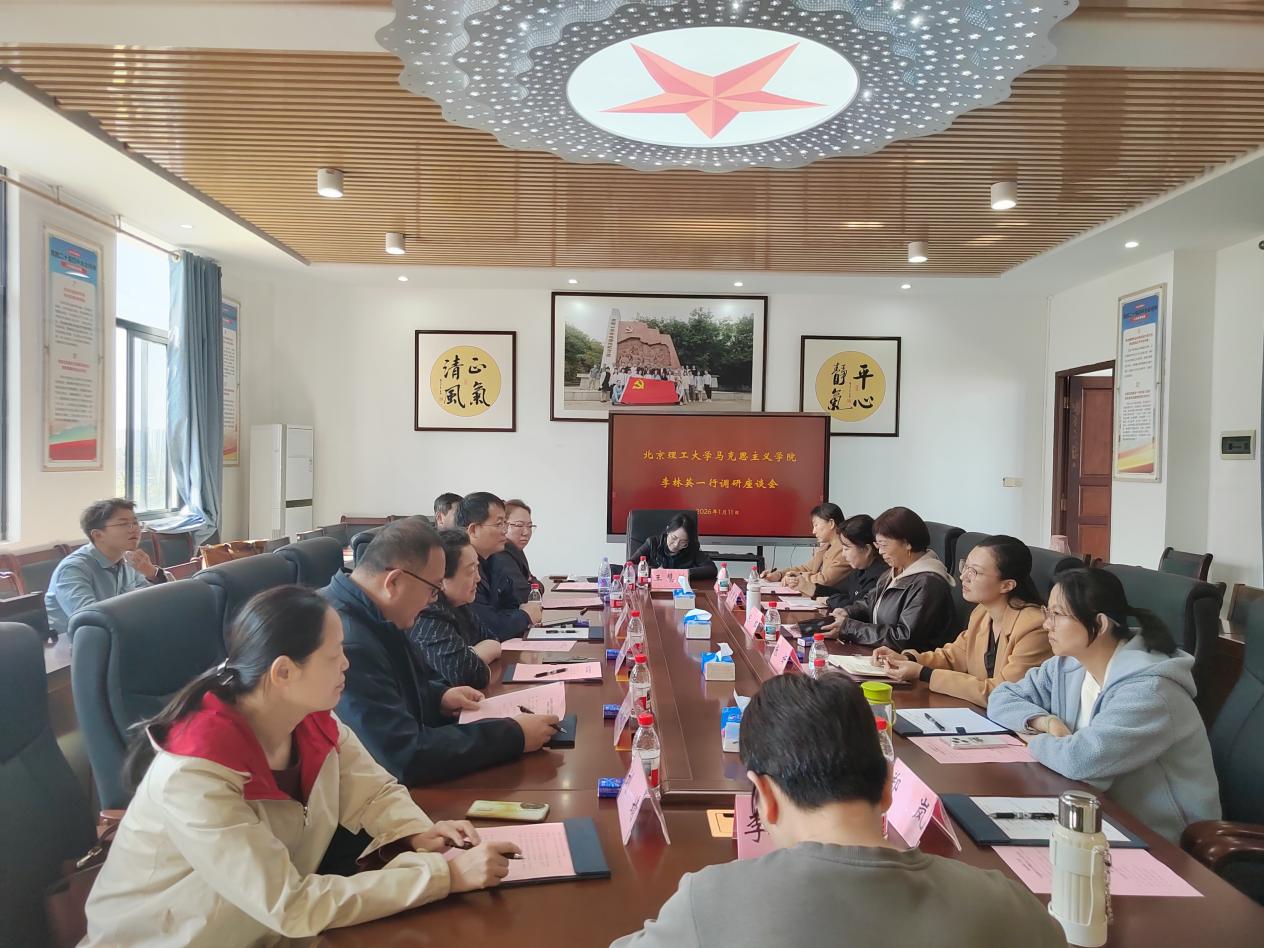 为深入贯彻落实习近平新时代中国特色社会主义思想,扎实推进“大思政课”建设工程,加强高校马克思主义学院在新时代背景下的协同创新与经验交流,2026年1月11日下午,北京理工大学马克思主义学院李林英教授一行8人莅临我院开展调研交流,海南师范大学马克思主义学院院长陈红、副院长张妍、德法教研室主任秦晶晶、党支部书记郑岚、教师李岩、高昕参加座谈,会议由陈红院长主持。