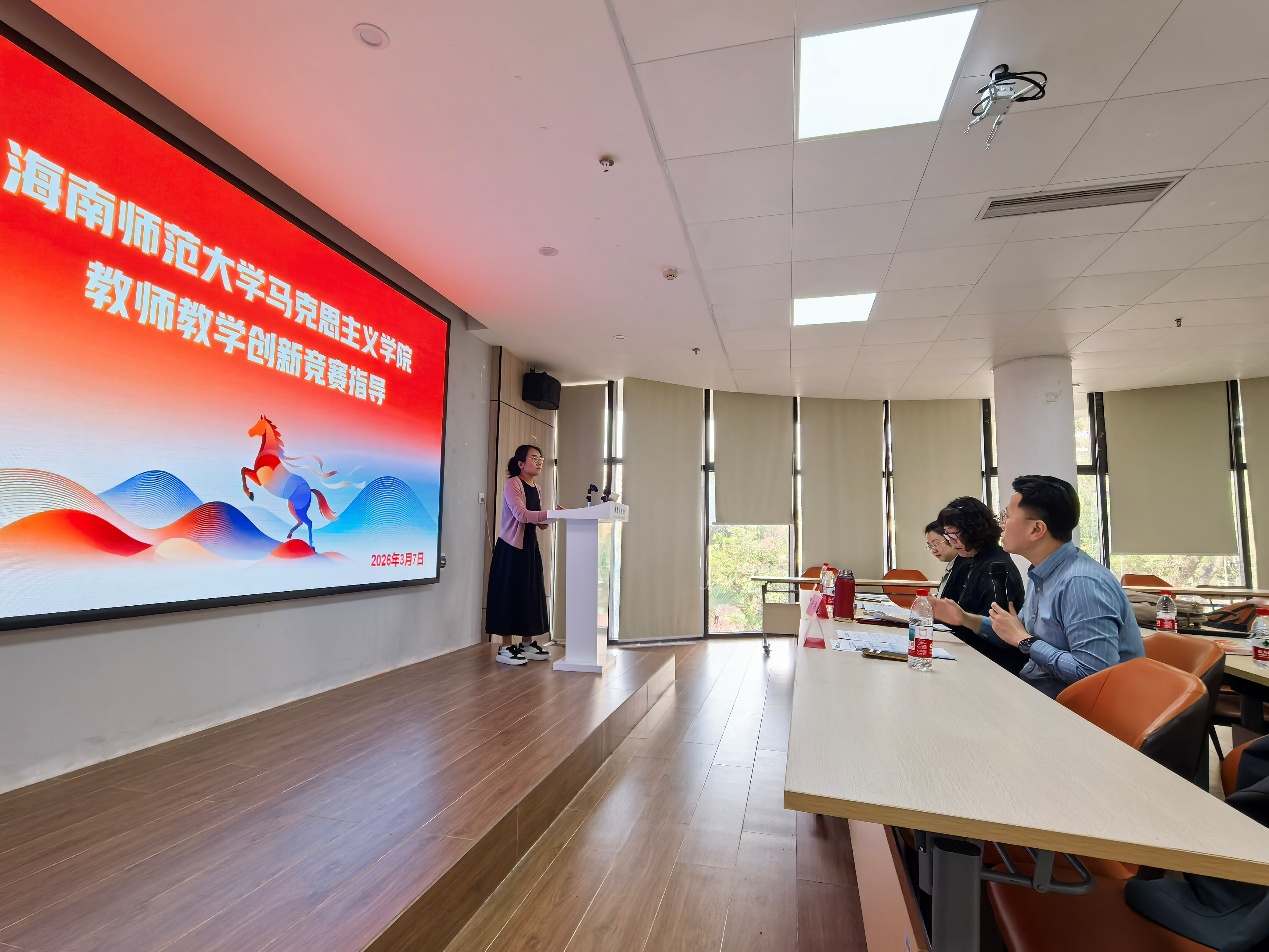 为深入贯彻落实立德树人根本任务,全面推进思政课教学改革创新,着力提升教师教学能力与育人水平,2026年3月7日上午,海南师范大学马克思主义学院高校教师教学创新比赛在龙昆南校区图书馆二楼校友之家顺利举办。