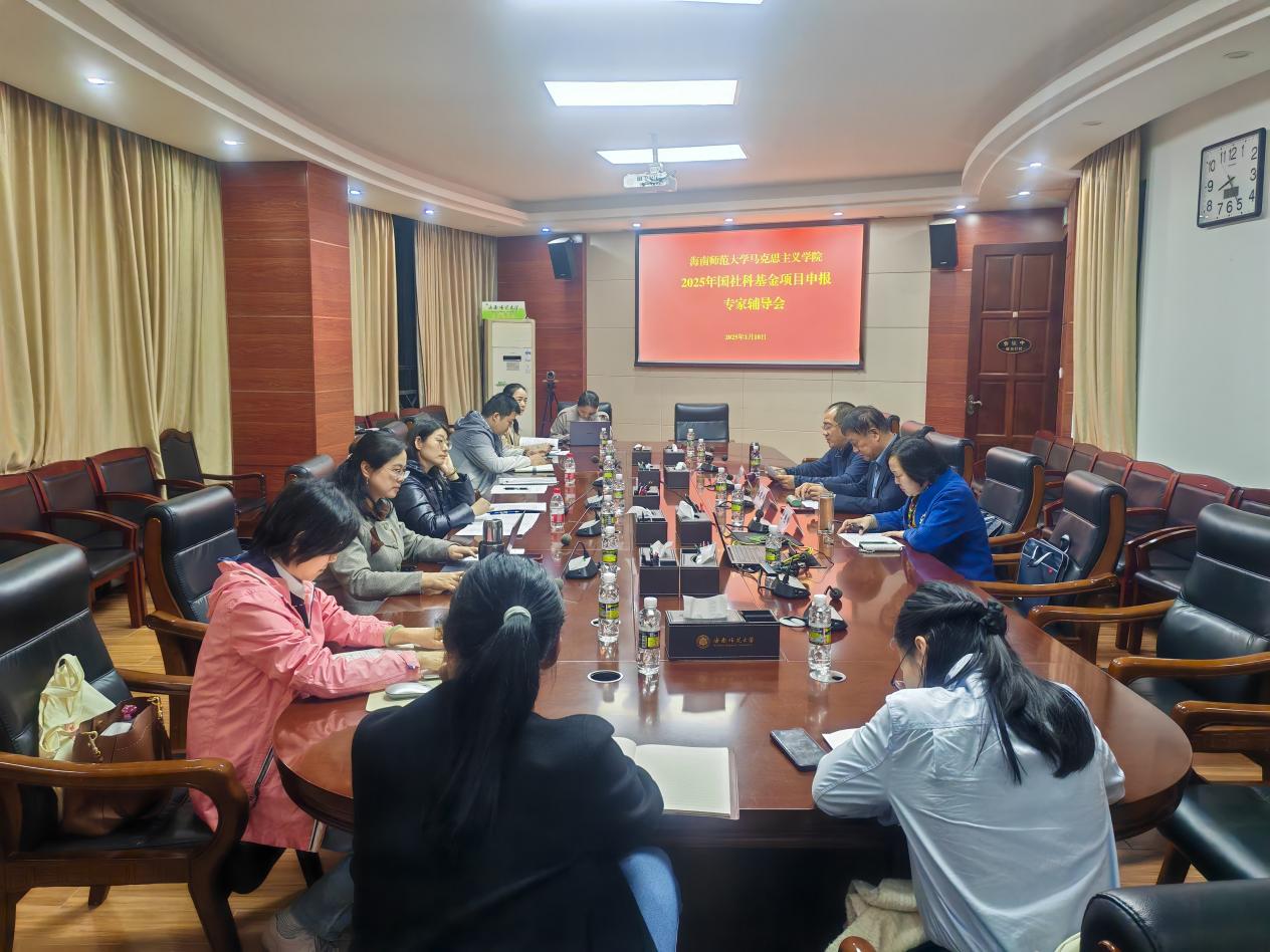 2025年1月10日晚上20:30,马克思主义学院2025年度国家社科基金选题辅导会在海南师范大学龙昆南行政楼三楼会议室顺利举行。