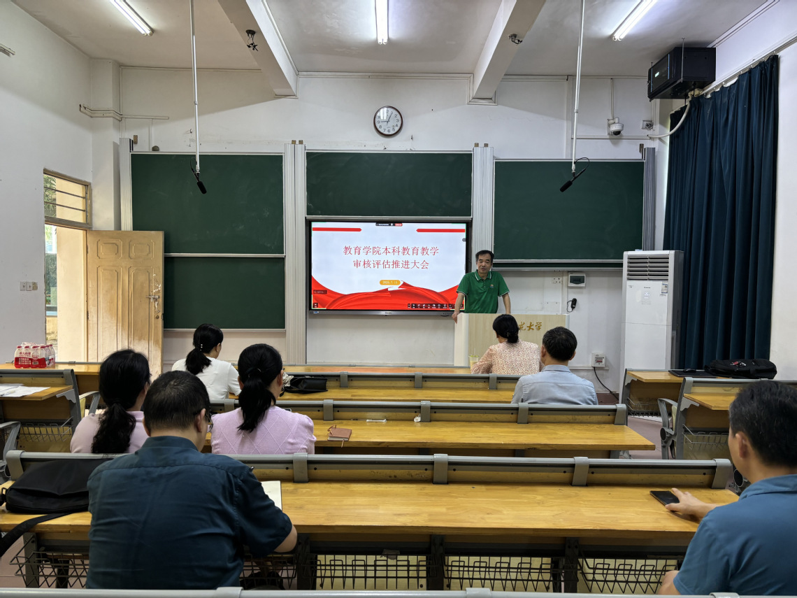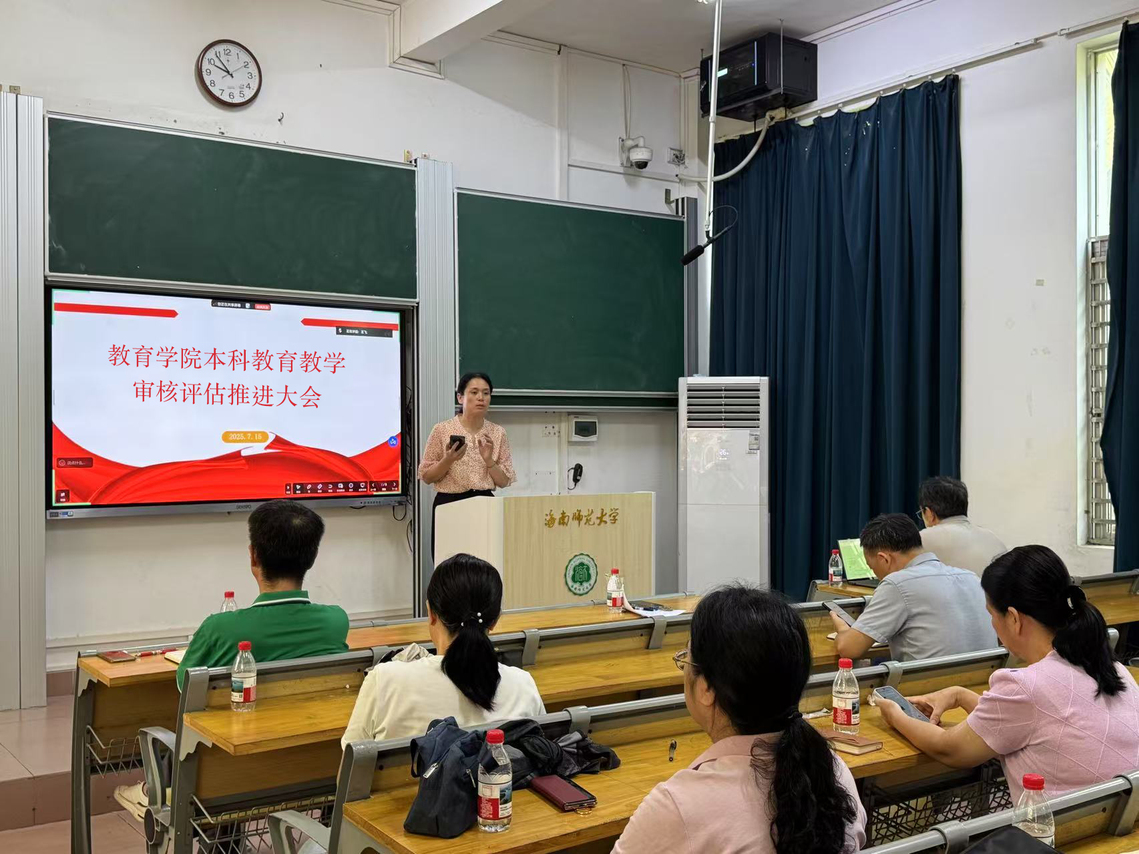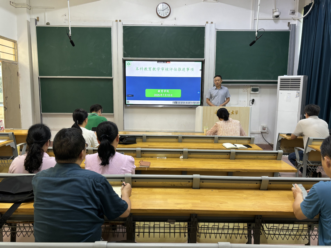 2025年7月15日,学院在田家炳教育书院102教室召开了本科教育教学审核评估推进大会,会议由张德伟院长主持,全院教师,行政办、教务办和学工办工作人员等参与了会议。
