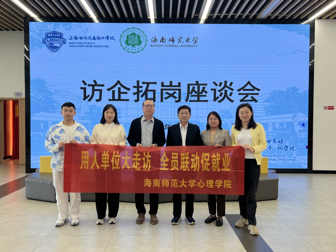 为深入贯彻落实教育部关于高校毕业生就业工作的决策部署,进一步加强校企合作,拓宽就业渠道,心理学院党委副书记刘宁、辅导员分别到海南枫叶国际学校和上海世外附属海口学校开展“访企拓岗促就业”专项行动。