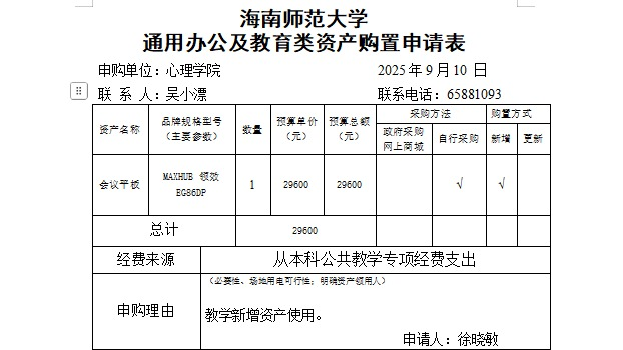 心理学院资产购置公示