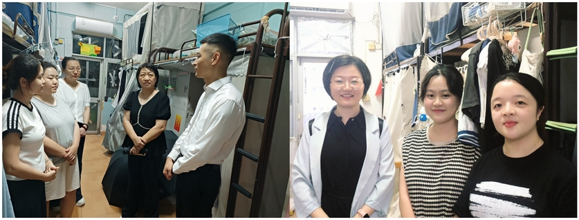 走访过程中,学院领导与老师们亲切询问同学们暑假期间的学习实践、生活体验与身心健康状况,并就新学期的课程安排、学业规划与个人发展目标与大家进行了轻松而深入的交流。老师们叮嘱同学们要尽快调整作息节奏,以积极饱满的状态投入到新学期的学习生活中;同时特别注意人身与财产安全教育,提醒大家增强网络安全意识、防范电信诈骗,注意宿舍用电安全,保持室内通风与卫生环境。