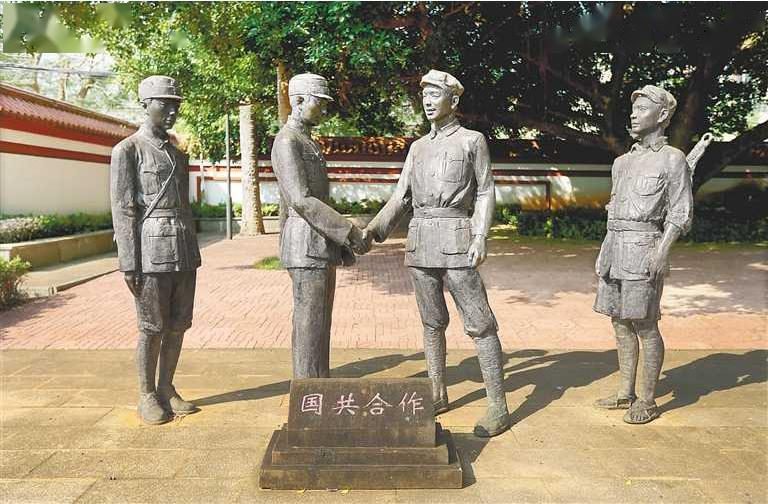 如今,在云龙改编旧址,自战士铜像向西行,一棵大榕树下,人们可看见古铜色的冯白驹雕像和王毅雕像在树荫下握手。“这尊‘国共合作’的雕像就是刻画了当时那一激动人心的时刻。”王丽萍说道。