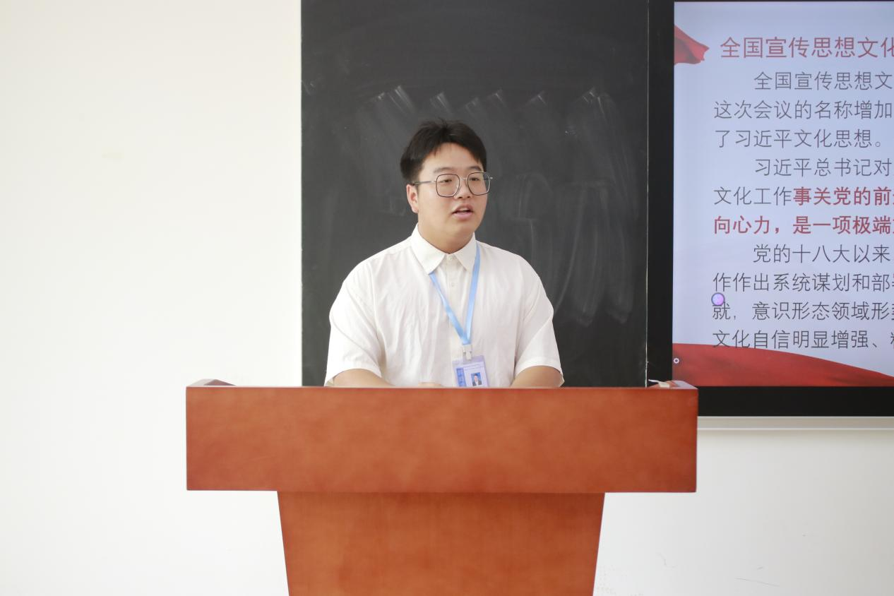 在此次会议中,首先由我院学生会执行主席熊乾坤同学向在场的各学生干部分享“习近平文化思想”的相关内容。熊乾坤同学强调了“习近平文化思想”在当今时代的重要性:习近平文化思想既有文化理论观点上的创新和突破,又有我国文化工作布局上的部署要求,明体达用、体用贯通,是我国新时代文化建设的路线图和任务书,为做好新时代新征程宣传思想文化工作、担负起新的文化使命提供了强大思想武器和科学行动指南。同时,熊乾坤同学指出作为历史文化学院的学生干部,更要以客观、科学、礼敬的态度对待历史和传统,守正不守旧、尊古不复古,既要做到守正,也要做到创新,守正才能不迷失自我、不迷失方向,创新才能把握时代、引领时代。因此,我院的学生干部们更要加强对习近平文化思想的学习,不忘历史才能开辟未来,善于继承才能善于创新;要坚持从历史走向未来,从延续民族文化血脉中开拓前进,以先进的思想来指导实践,做到不存私心,不带私利,全力以赴地完成学生会的每项工作。