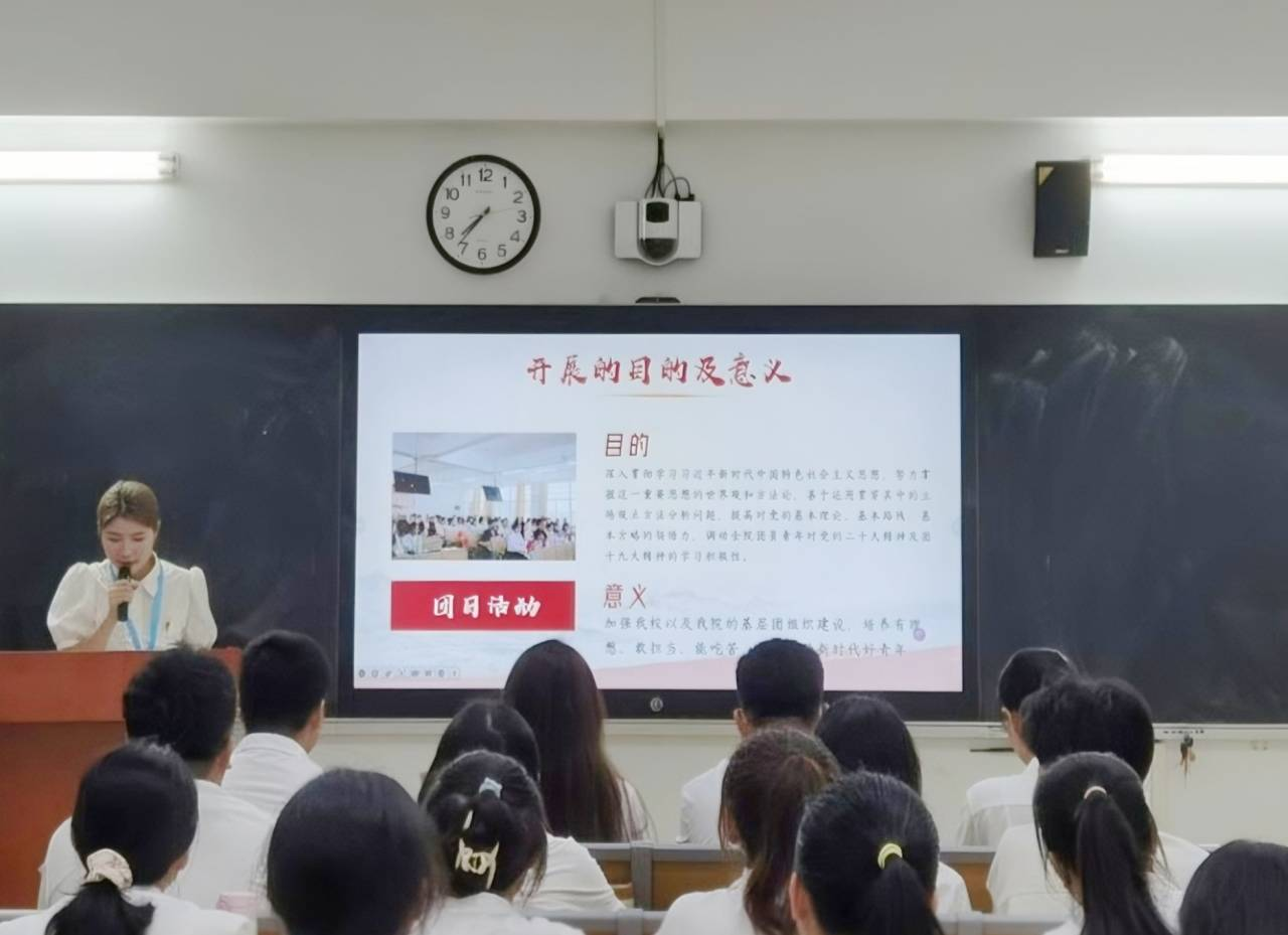会议第三项,组织部副部长黄靖童同学清晰地介绍了各团支部主题团日活动汇报的参考开展形式,并播放往期优秀团支部汇报视频,为各班后续进行主题团日活动汇报提供了有效参考。