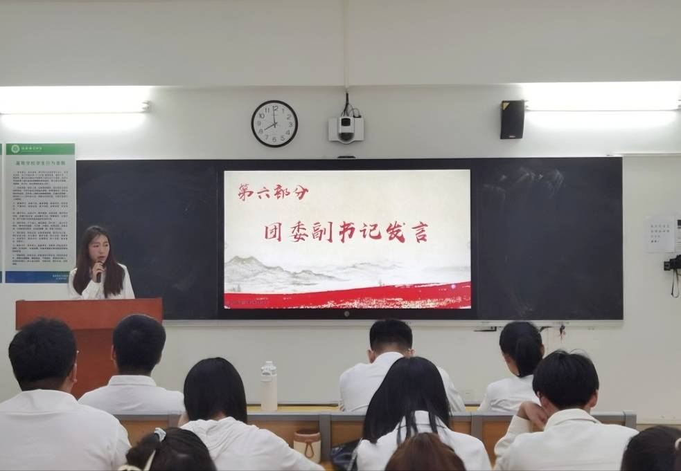 会议第六项,团委副书记王晨同学对此次大会进行了简单的总结。王晨同学号召各支部以饱满的热情与认真的态度投入到此次主题团日活动的开展之中。并强调,各团支部在开展各项活动时需围绕主题和内容开展,要着重体现我院专业特色;各团支部要做好活动记录与总结,充分利用媒体平台进行宣传,扩大影响力。最后,王晨同学表示期待各团支部能积极地参与此次主题团日活动,为大家呈现出丰富、新颖、出彩的活动内容。