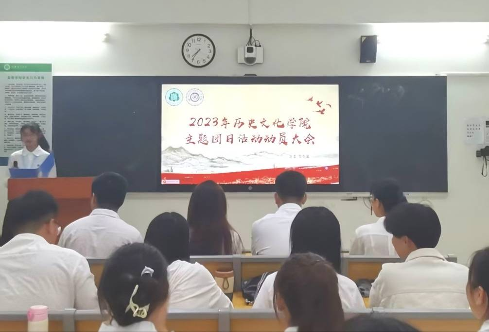 为响应校团委号召,加强我院基层团组织建设,调动我院团员青年参与本次活动的积极性,更好地推进2023学年历史文化学院主题团日活动的顺利开展,我院团委组织部于2023年11月5日在第二公共楼301教室召开了2023学年历史文化学院主题团日活动动员大会。此次动员大会邀请了各团支部书记、副书记、组织委员、宣传委员及23级各班班助参会。会议上,团委副书记王晨同学、组织部部长谭轩竺同学、组织部副部长黄靖童同学以及2021级团支书代表梁扬柯同学对主题团日活动相关事宜进行详细地介绍并发出动员,其中主要介绍了本次主题团日活动的四大主题与开展方式,强调了本次主题团日活动的重要性。本次动员大会由孟虹孜同学进行主持。