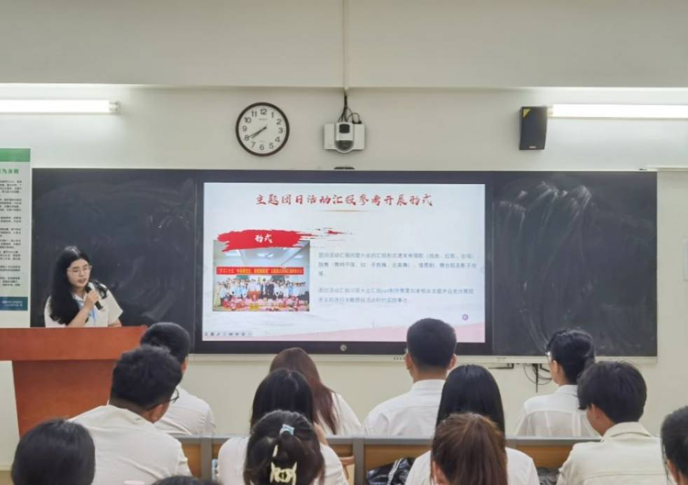 (组织部副部长黄靖童同学介绍主题团日活动汇报的参考开展形式)
