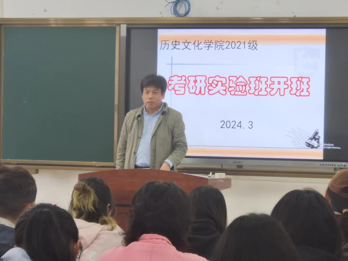 为更好地激发考研学子学习奋斗的内生动力,助力考研学子成就自我,同时发挥考研学子的榜样示范作用,形成良好学风,海师历史文化学院决定在2021级学生中建立考研实验班,对立志考研究生的学子进行专程的培训和管理。学院于2024年3月11日在第一公共楼503举行了2021级考研实验班开班大会。海南师范大学历史文化学院院长赵克生,党委副书记郑海妹老师以及49名备考学生参加本次大会。