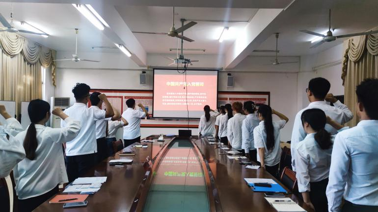 大会第八项,全体党员在王晨同志的带领下,宣读入党誓词。在铿锵有力的宣誓声中,本次会议落下帷幕。