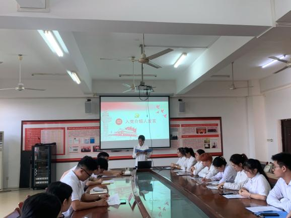会议第二项,入党介绍人冯佳乐、吴雪、黄烨坤、刘晨轶、曹睿杰五位同志分别介绍七位发展对象的有关情况,本实事求是的原则,通过进行综合考量,对其能否入党表明意见。