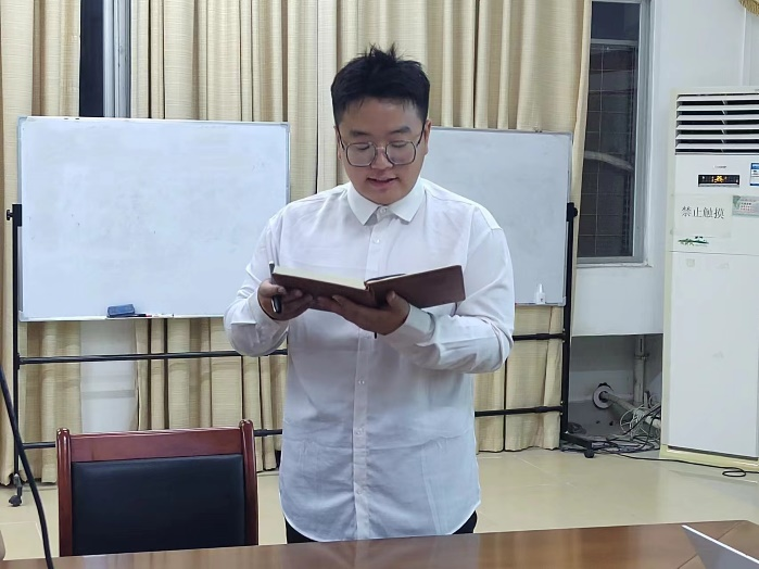 会议伊始,郭雷鸣老师指出与2018年《条例》相比,2023年《条例》新增16条,修改76条。此次《条例》的修订,是加强纪律建设,不断加强党的自我革命、自我净化、自我完善的重要体现。郭雷鸣老师强调全体师生党员要积极贯彻落实党中央的要求,深入学习领会,切实提高学习贯彻《条例》的政治自觉、思想自觉、行动自觉。郭雷鸣老师结合在校党员和毕业生党员的实际情况,号召全体党员认真学习《条例》,将所学内容应用于学习和事业发展之中。最后,郭雷鸣老师勉励全体党员同志强化底线意识,团结一致,保持纯洁性、坚持廉洁性,发展先进性,把遵规守法内化为思想自觉。