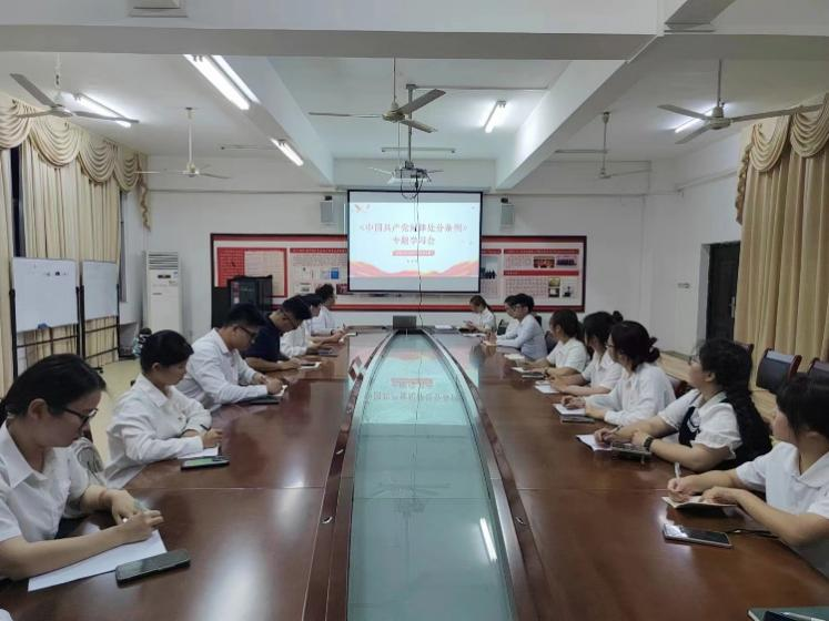 为深入贯彻落实全面从严治党要求,进一步加强党的纪律建设,提高党员的纪律意识,引导党员干部明纪法、守底线,海南师范大学历史文化学院本科生党支部于2024年4月26日下午19:30整在公共楼会议室召开历史文化学院本科生党支部全体党员理论学习会,专题学习《中国共产党纪律处分条例》2023修订版(以下简称《条例》)新增、修改重点条文。会议由白爽同志主持,全体在校本科生党员参加会议。
