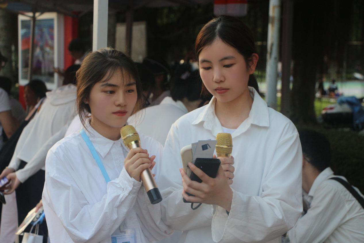 在活动之余,历史文化学院工作人员们还举起话筒,娓娓动听的歌声吸引着行人驻足。他们的歌声,像一团热情的火焰,点燃了现场的气氛,让原本平静的氛围瞬间变得热烈而充满活力。听众们或轻轻拍手,或随着旋律轻声合唱,整个现场沉浸在一片欢乐与和谐之中。
