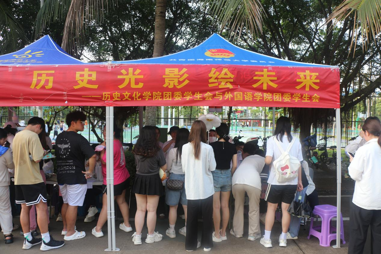 5月11日,海南师范大学历史文化学院与外国语学院于桂林洋校区篮球场旁校道举办了以“呈欢承影,光影流华”为主题的电影嘉年华活动。本次活动面向海南师范大学全体师生,旨在将我校共青影苑活动发扬光大,丰富学生文娱生活。