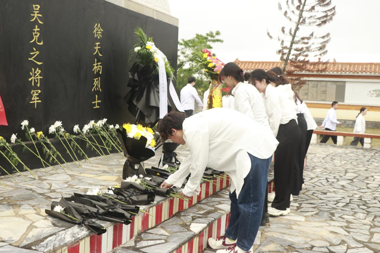 紧接着,活动进入第二项,全体本科生党支部成员及在场学生干部依次上前,向烈士纪念碑敬献鲜花。一束束鲜花寄托着后辈对先烈的无限敬仰和哀思,也象征着革命精神的代代相传。