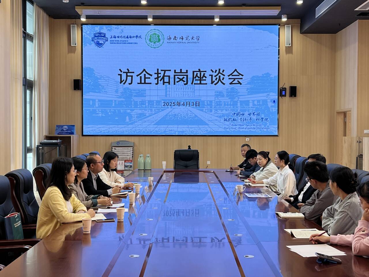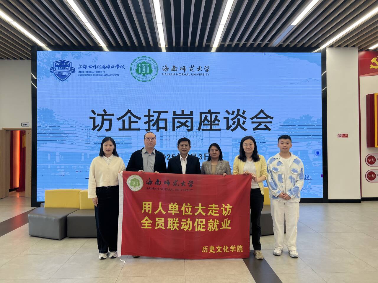4月3日上午,历史文化学院副院长武刚(挂职)、心理学院党委副书记刘宁等一行人前往上海世外附属海口学校走访调研,开展“访企拓岗促就业”专项行动。