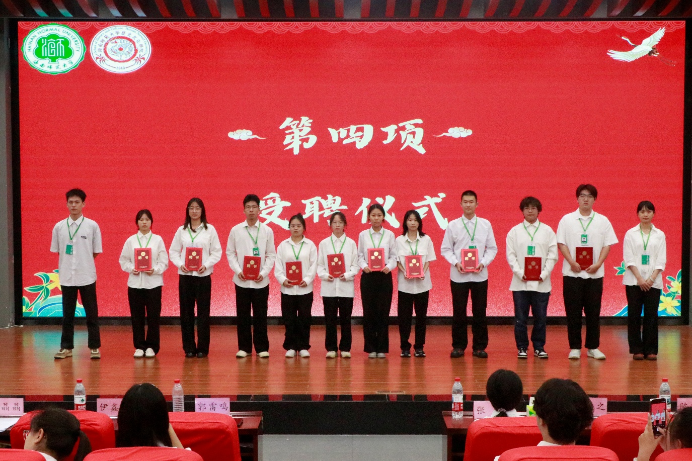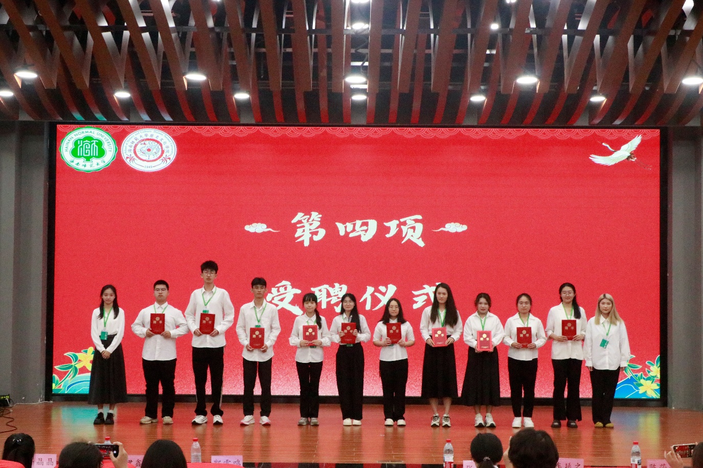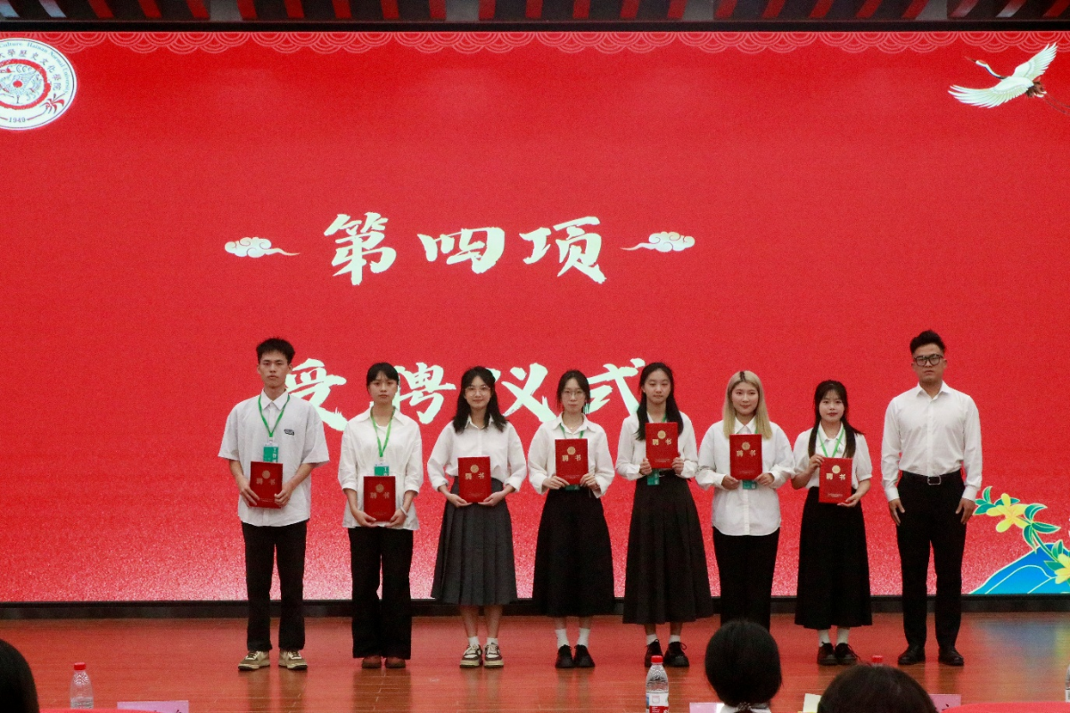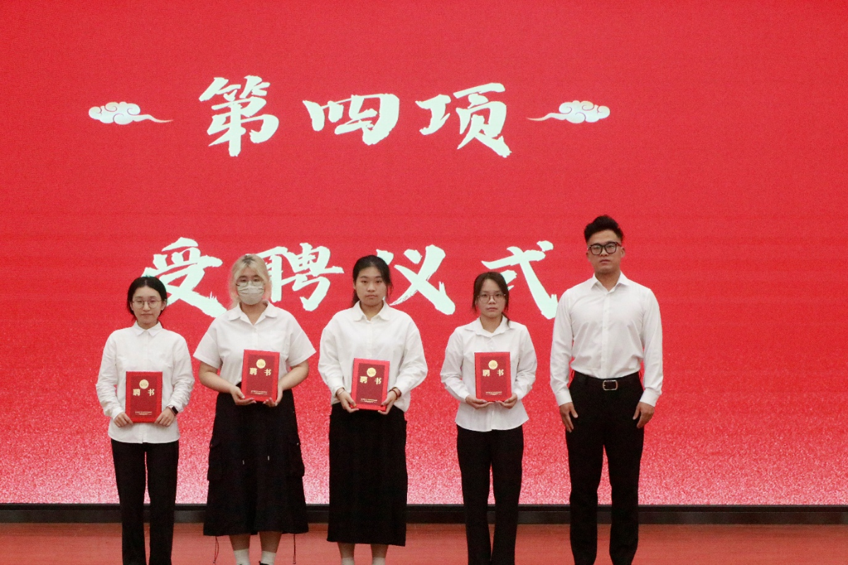 会议第三项,主持人宣布历史文化学院2024-2025年度优秀学生干部获奖名单。会议第四项,进行历史文化学院2024-2025年度团委学生会学生干部暨新生班主任助理受聘仪式。会议第五项,进行优秀学生干部颁奖仪式。