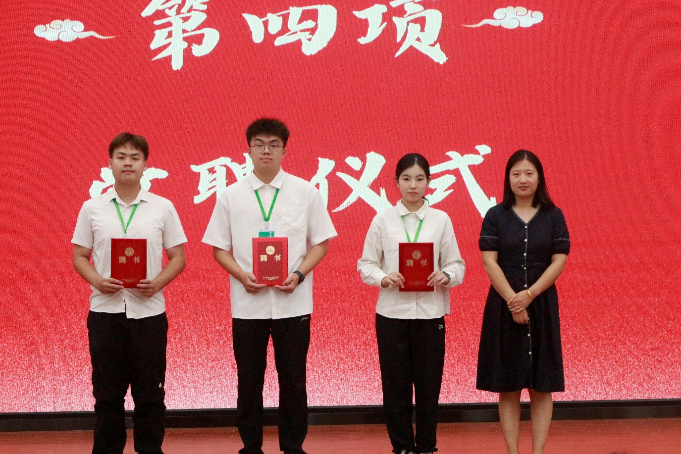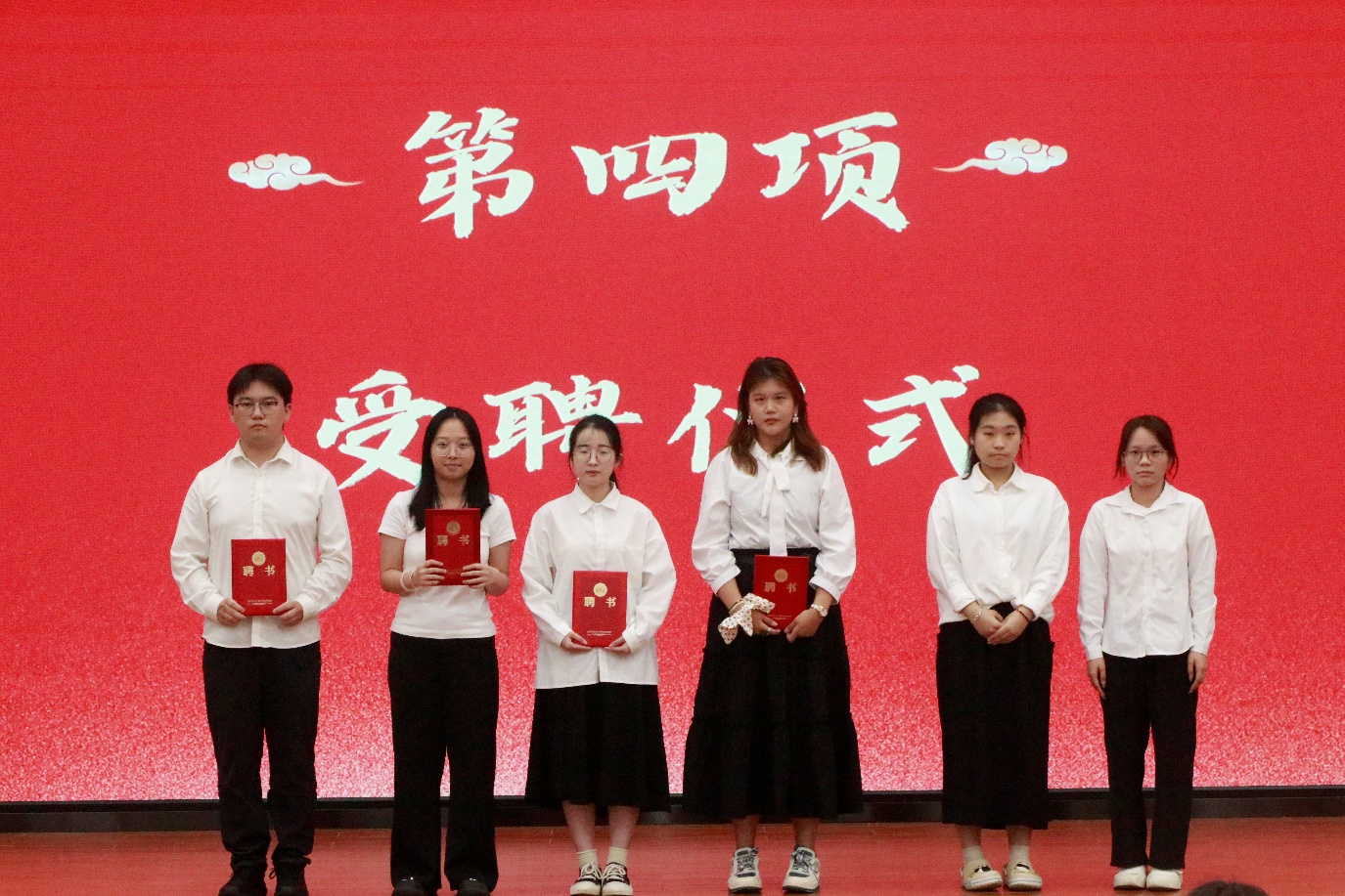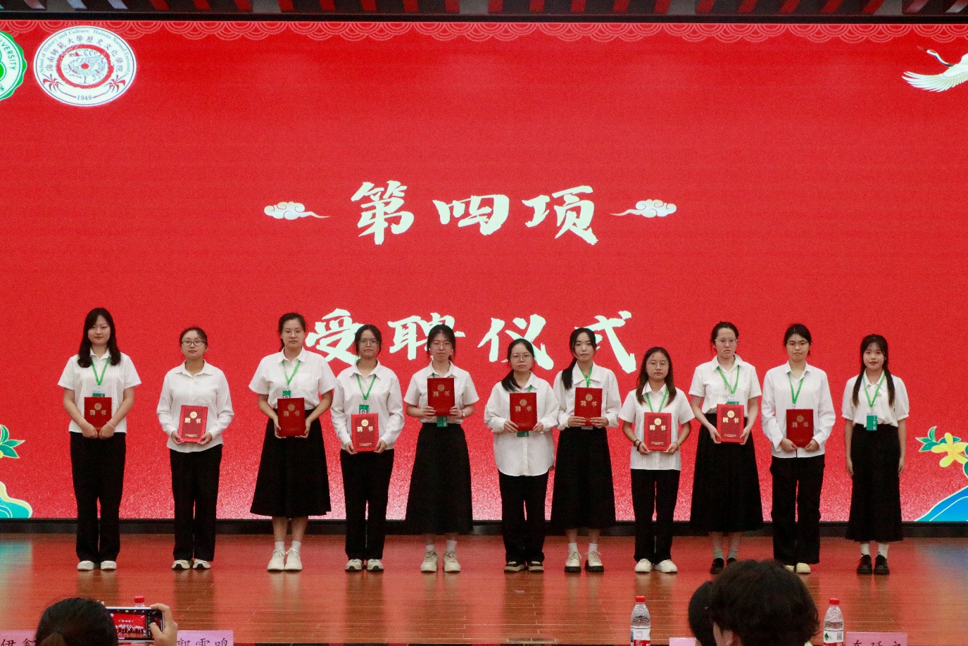 会议第三项,主持人宣布历史文化学院2024-2025年度优秀学生干部获奖名单。会议第四项,进行历史文化学院2024-2025年度团委学生会学生干部暨新生班主任助理受聘仪式。会议第五项,进行优秀学生干部颁奖仪式。